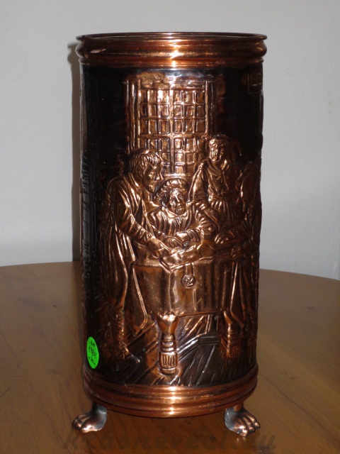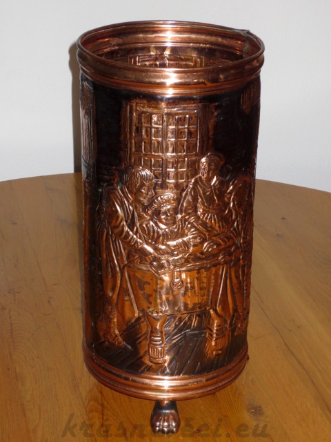 Velmi pěkná exklusivní velká měděná tepaná nádoba se zdobením. Vhodná na odkládání deštníků, nebo na suchou květinovou výzdobu.