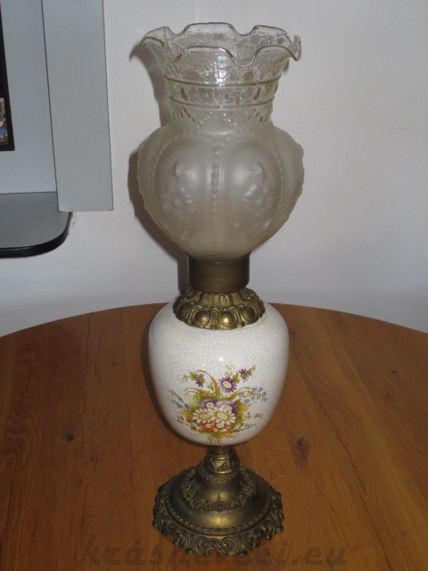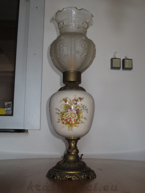 Velmi pěkná zajímavá stolní lampa, ručně malovaná keramika, mosaz se zdobením.