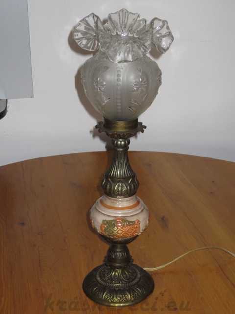 Velmi pěkná zajímavá stolní lampa. ručně malovaná keramika, mosaz se zdobením.