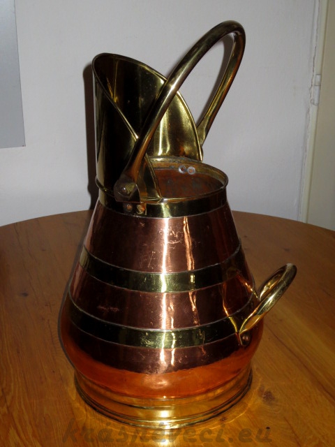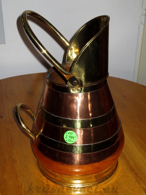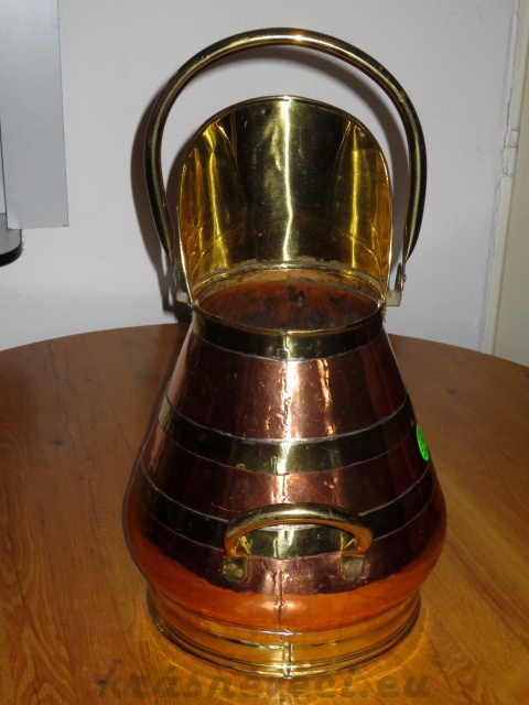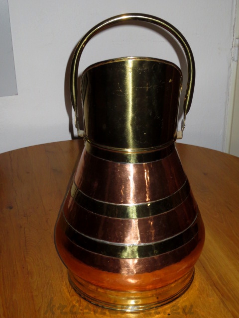 Velmi pěkná velká měděná nádoba se 2 mosaznými oušky a mosaznou nálevkou.