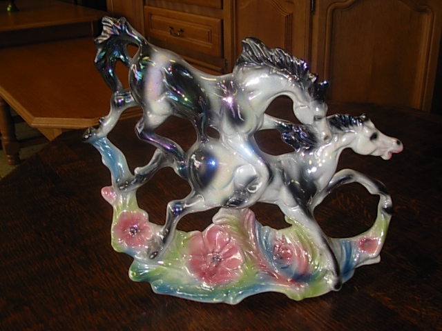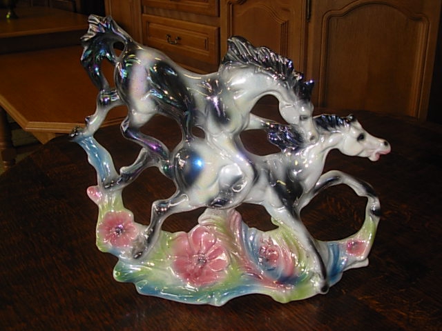 Velmi pěkné barevné keramické sousoší - koně.