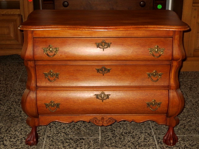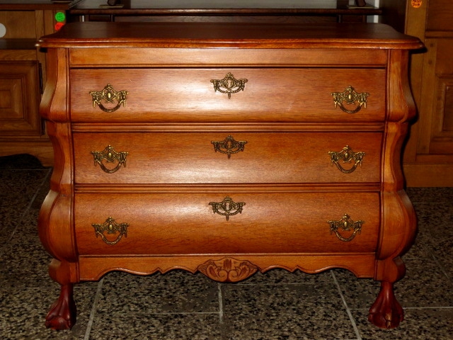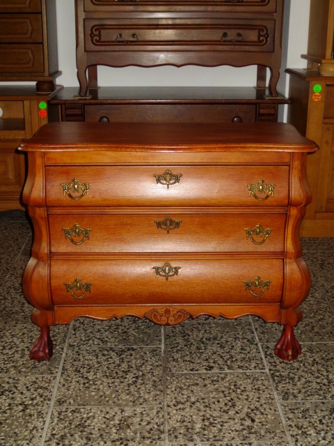 Velmi pěkná exklusivní šuplíková komoda se zdobením na 4 nožkách se 3 šuplíky a mosazným kováním.