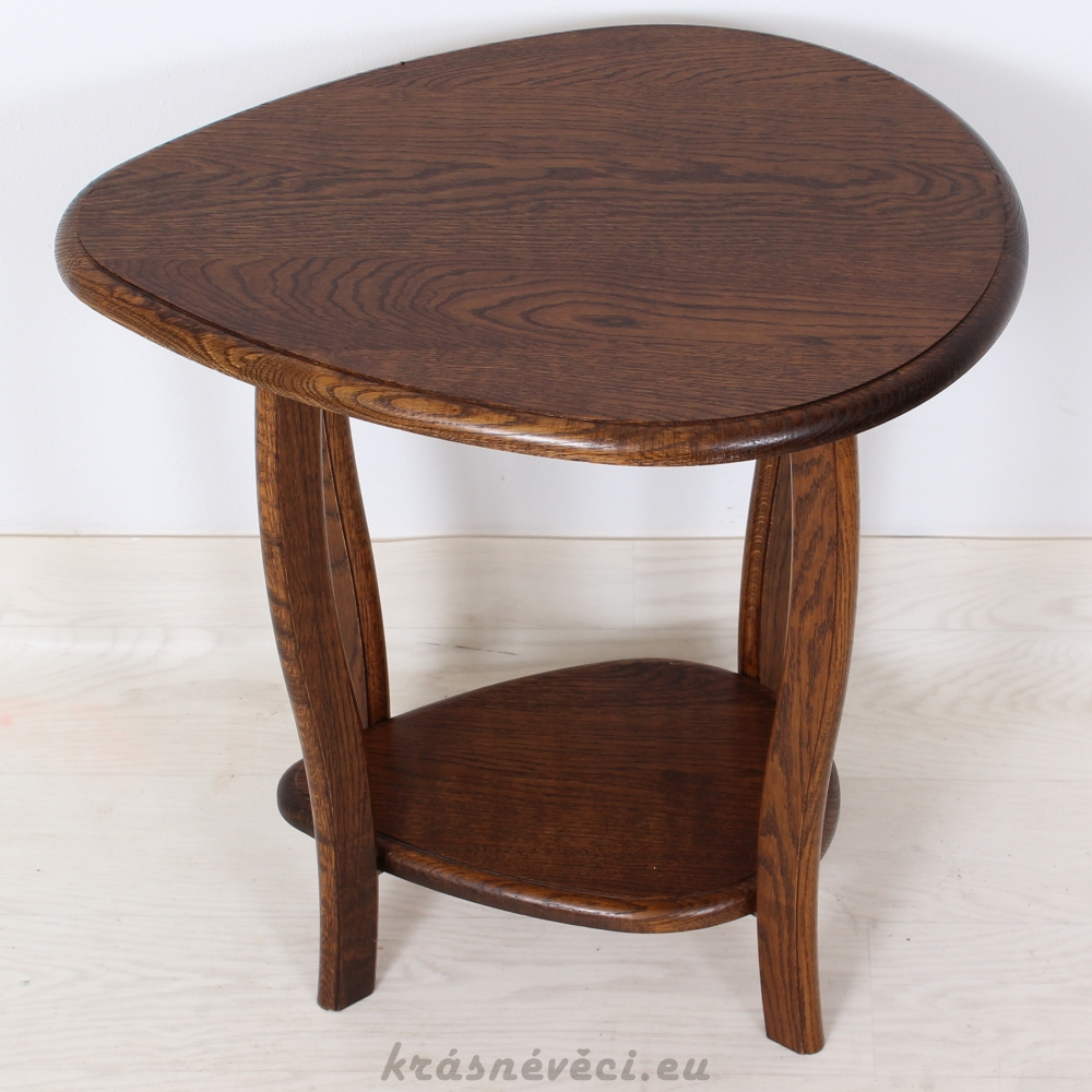 Velmi pěkný exklusivní masivní dubový stolík s horní deskou a odkládací deskou zajímavého tvaru, 4 nohy