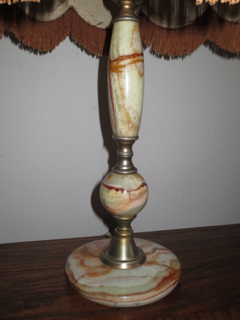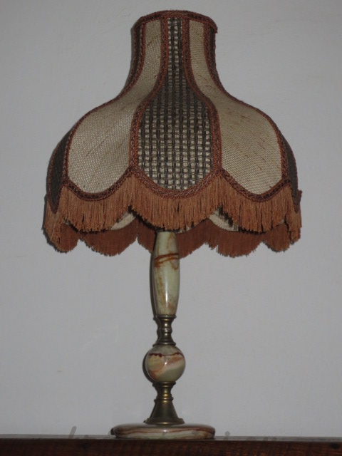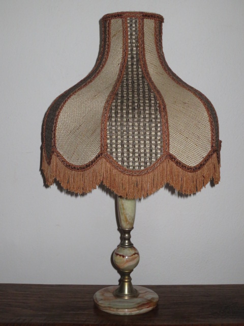 Velmi pěkná zajímavá velká stolní lampa s kamennou konstrukcí.