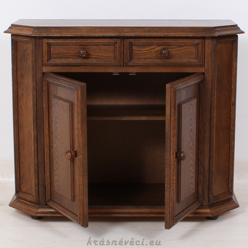 Velmi pěkná zajímavá komoda, 2x dvířka, 2x šuplík.