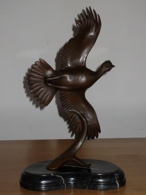 Velmi pěkný exklusivní bronzový pták, bronzový odlitek na mramorovém podstavci.
