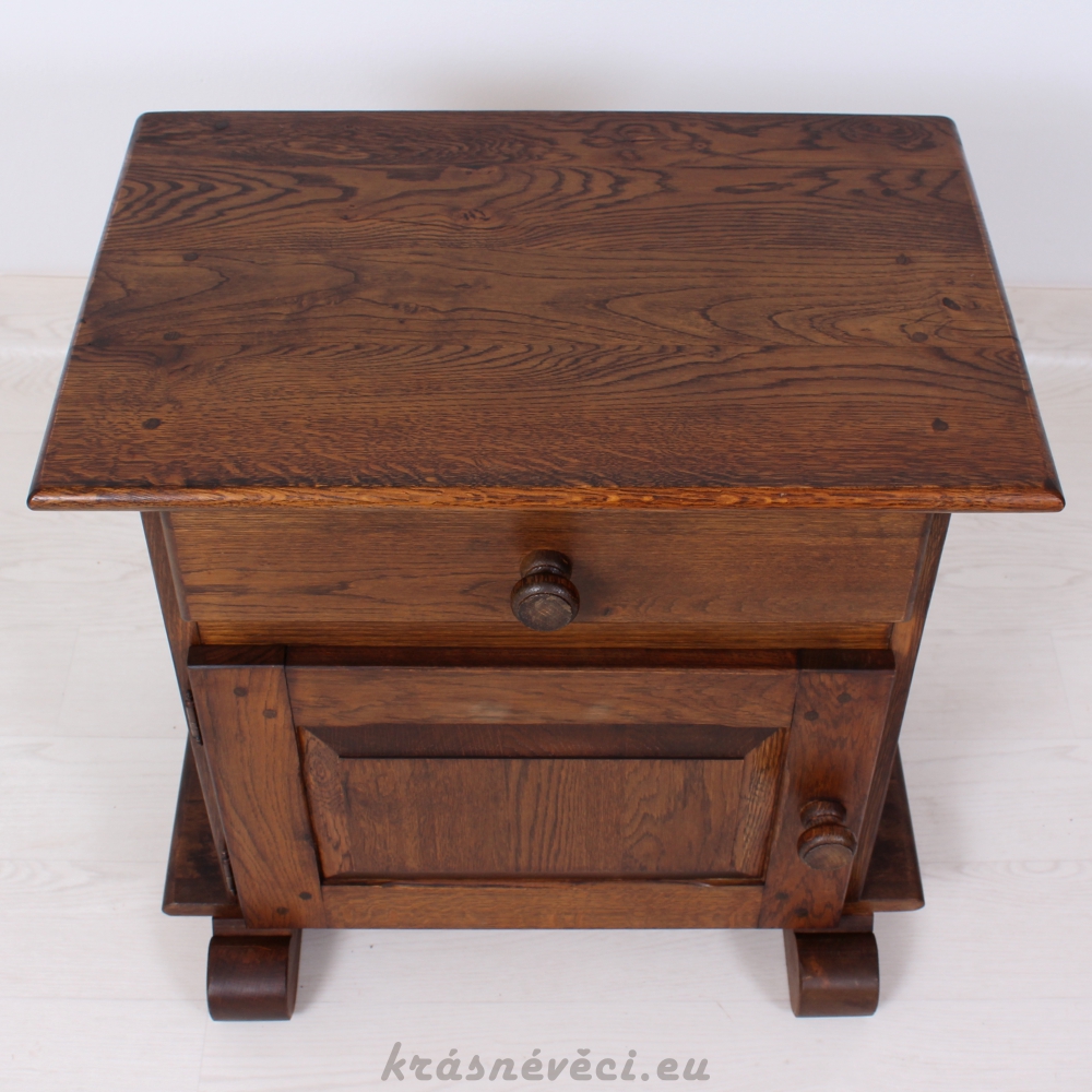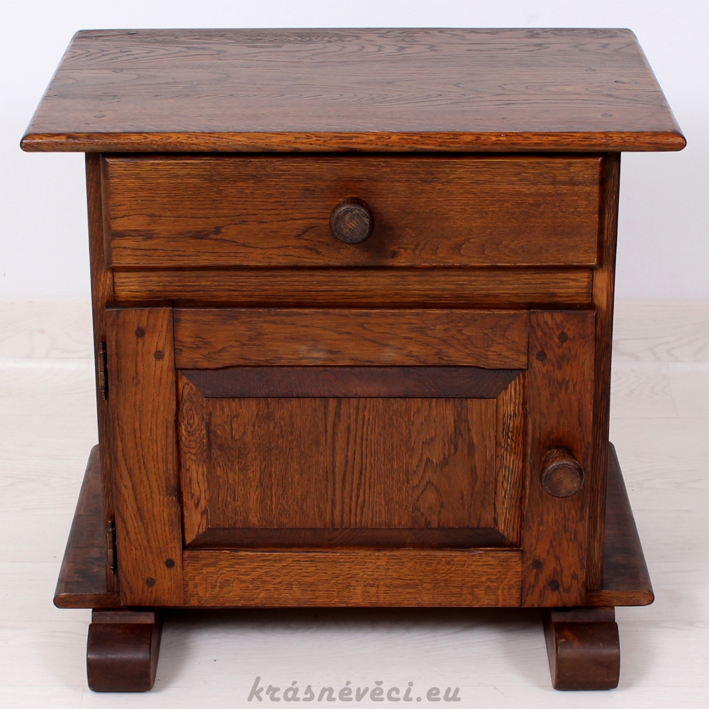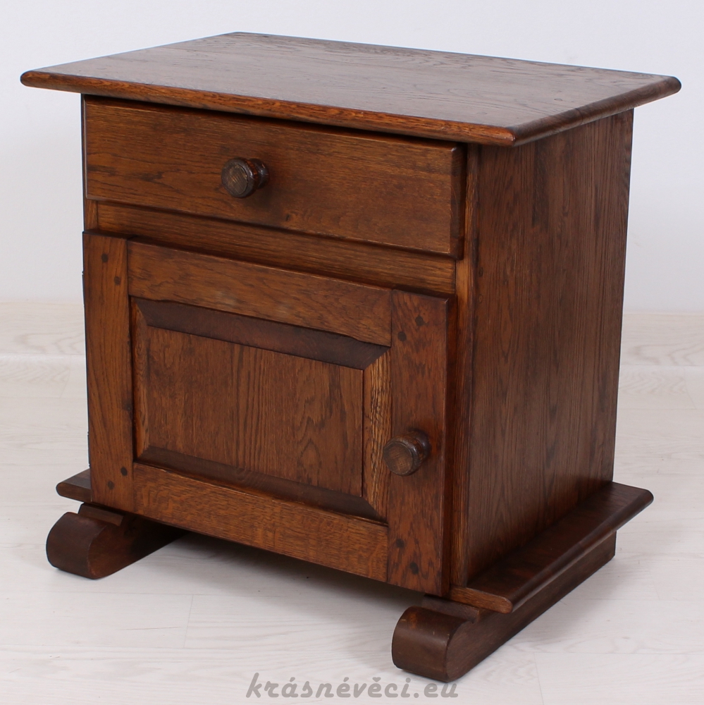 Velmi pěkná exklusivní dubová selská komoda s vyditelnými přiznanými kolíky. V nabídce komoda s pravým, nebo levým otvíráním. 1x dvířka, 1x šuplík. 100% MASIV DUB.