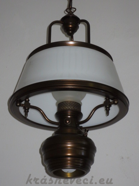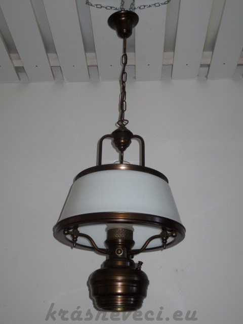 Velmi pěkný exklusivní lustr na řetězu, 2x svícení - spodní svícení a horní svícení, přepínání světel, regulace svítivosti s vypínačem. Možnost zkrácení celkové výšky lustru odebráním oček řetězu.