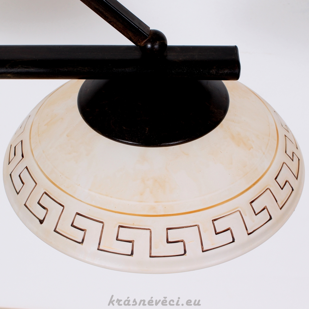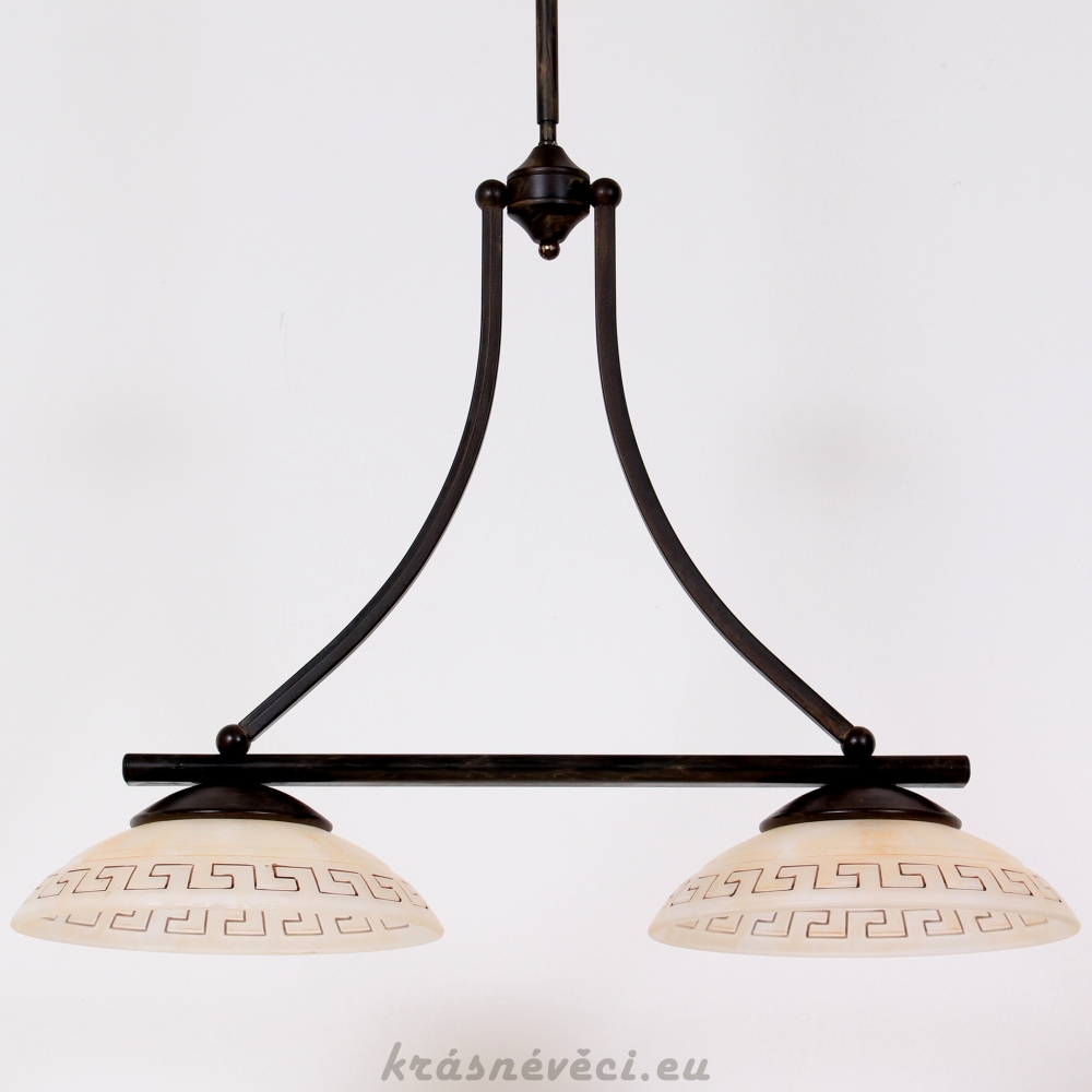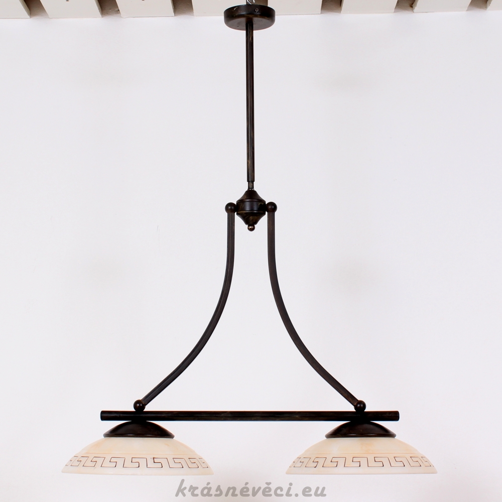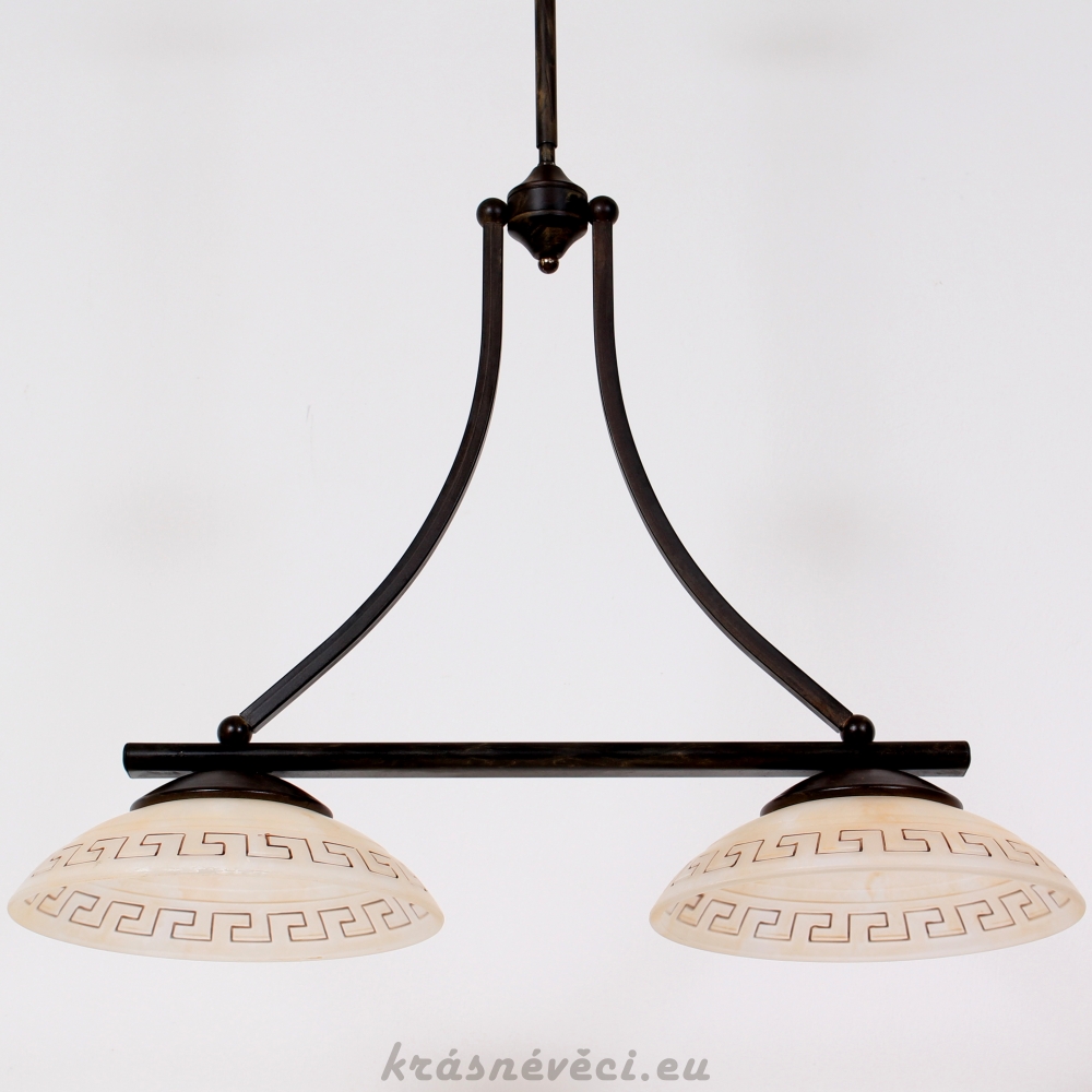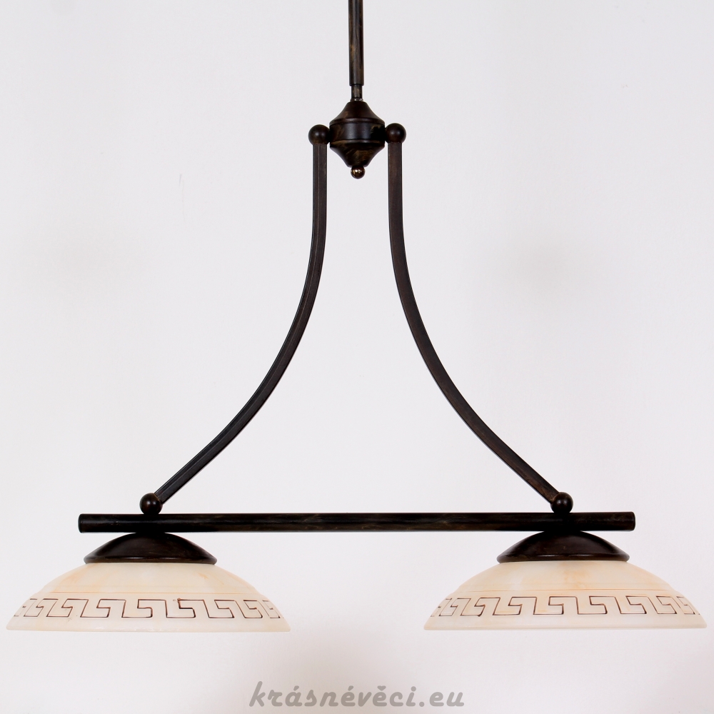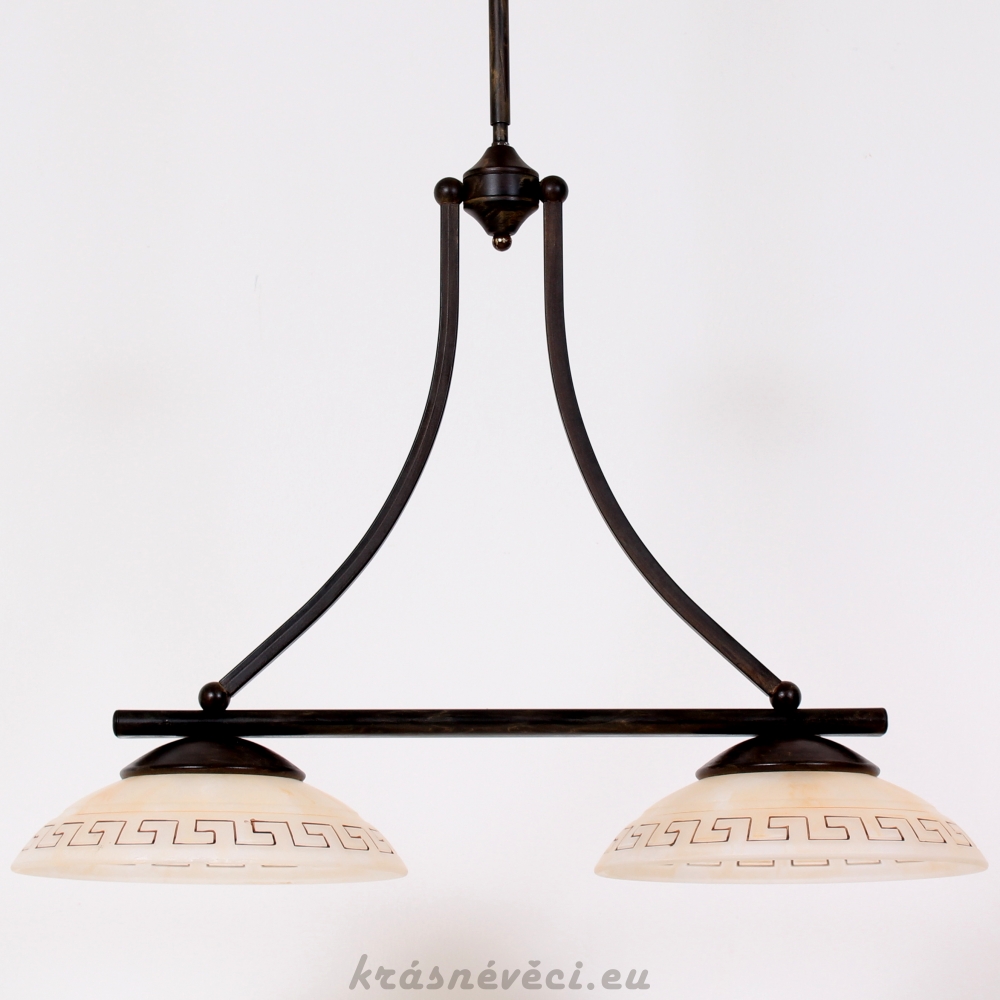 Velmi pěkný exklusivní 2 ramenný lustr s kovovou konstrukcí a žíhaným rustikálním sklem.