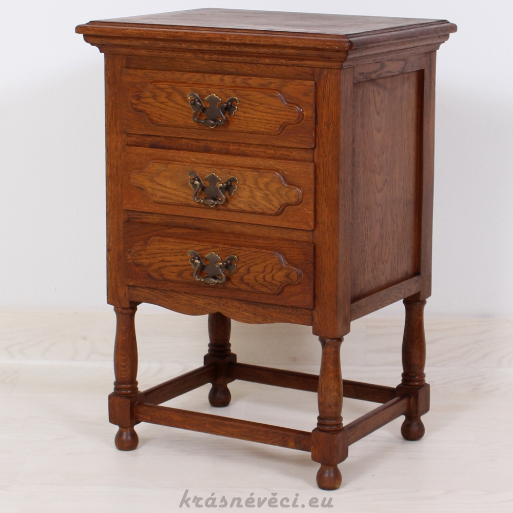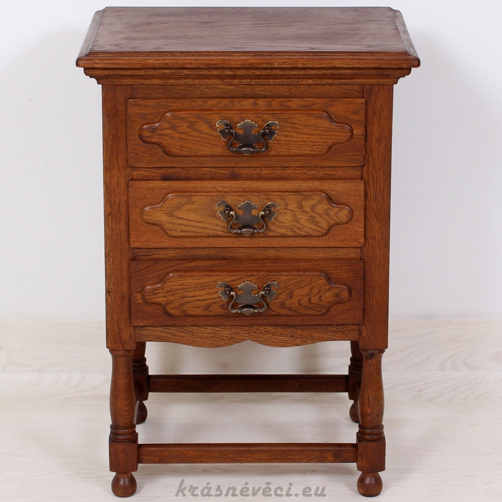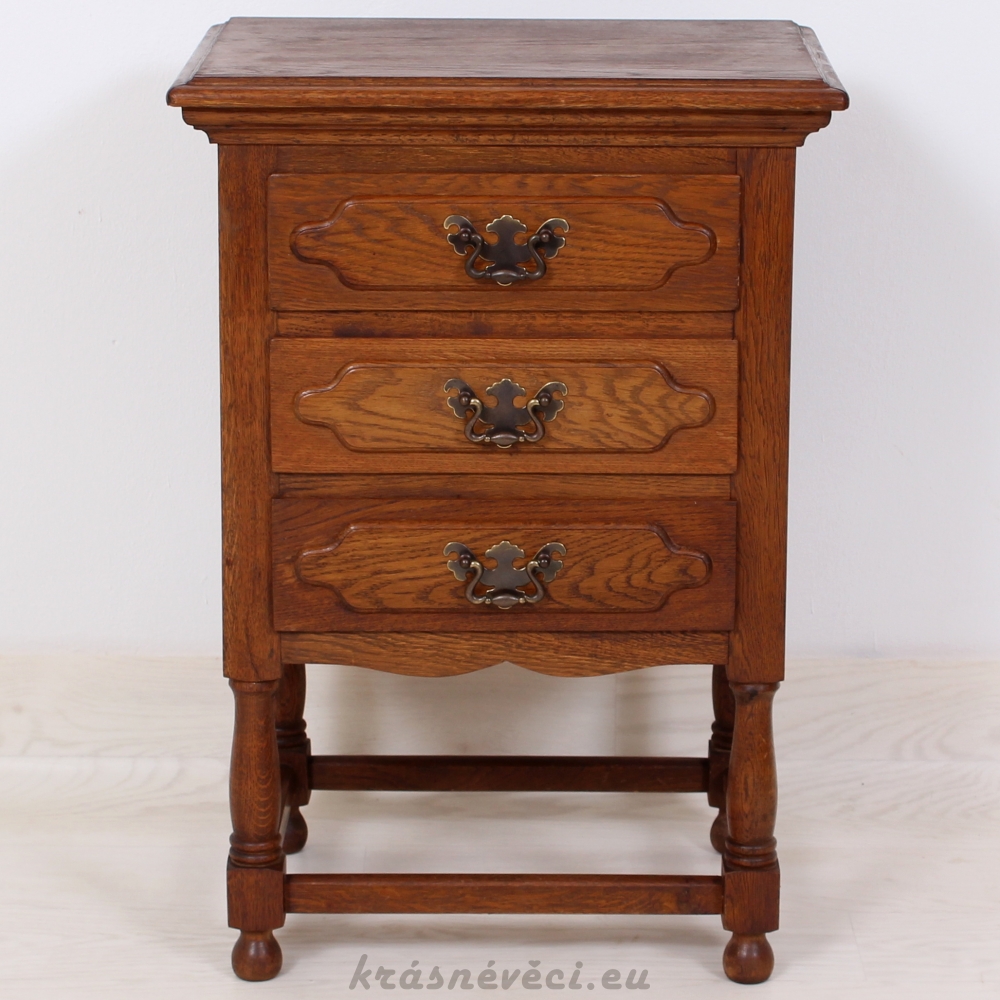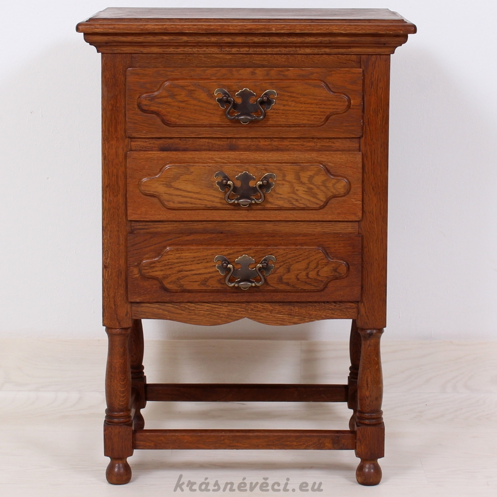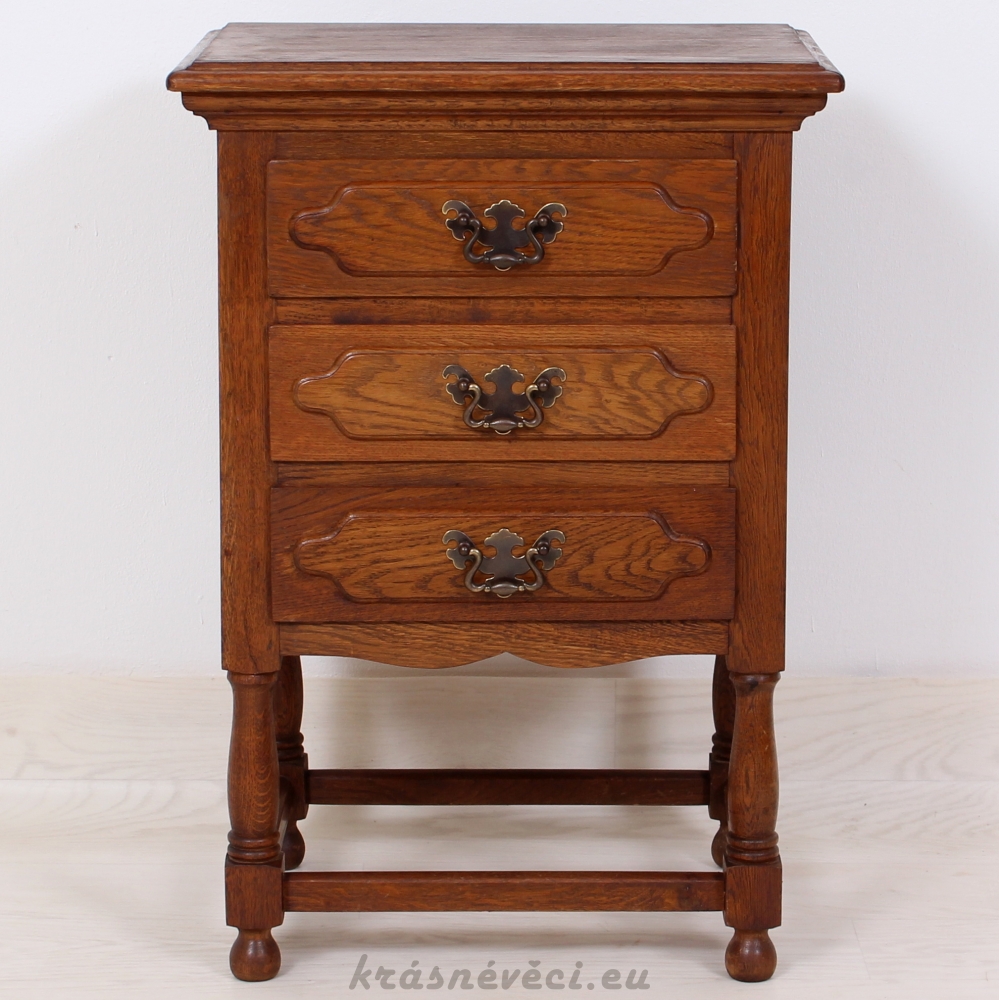 Velmi pěkná exklusivní šuplíková komoda na 4 nožkách, 3x šuplíky, kování.