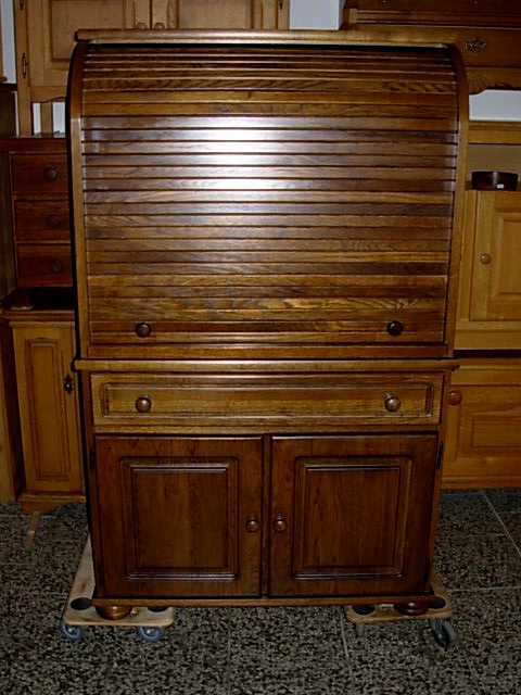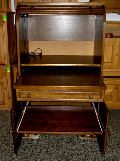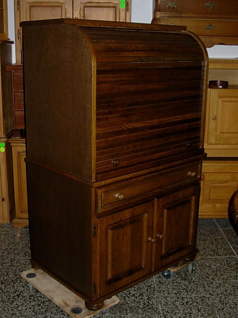 Velmi pěkná velká komoda - psací stůl s roletou, 2x dvířka 1x šuplík, 2x vyjížděcí deska, 1x velká shrnovací roleta.