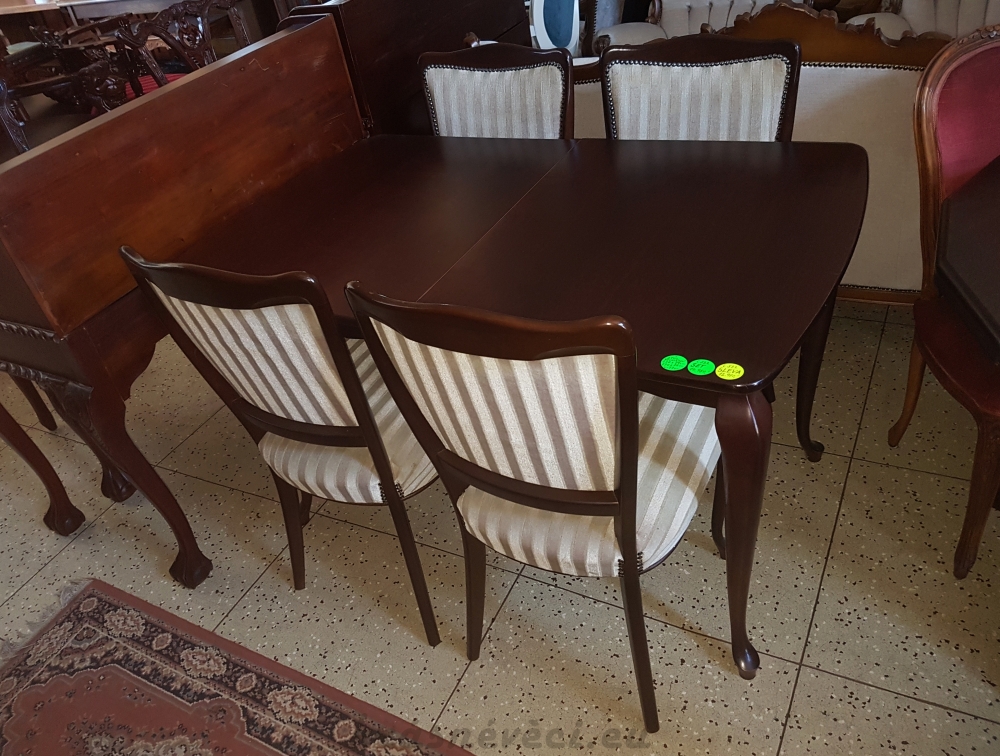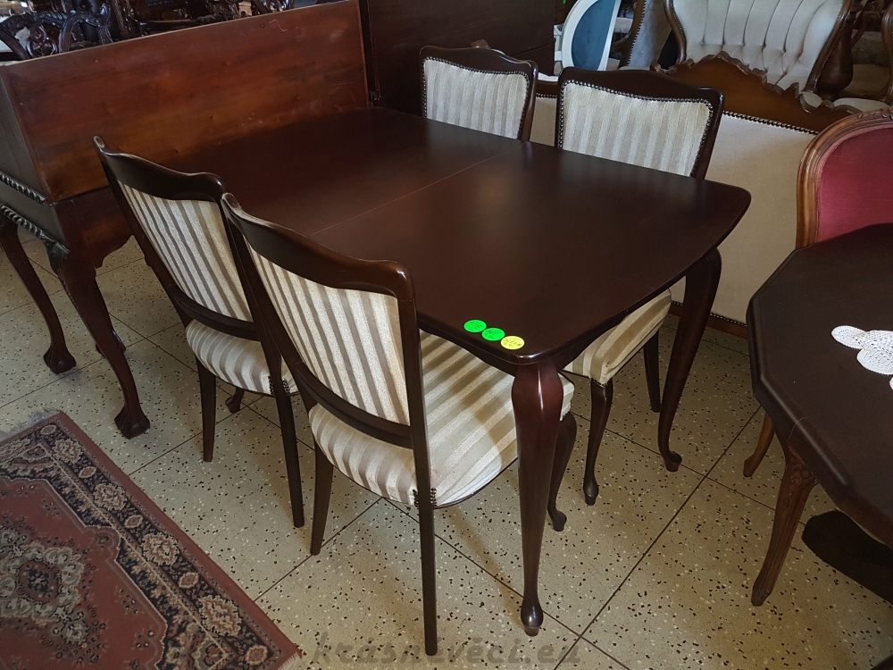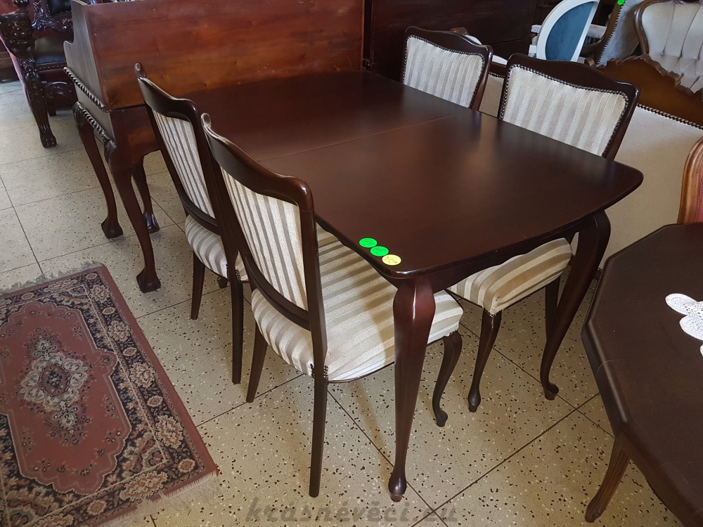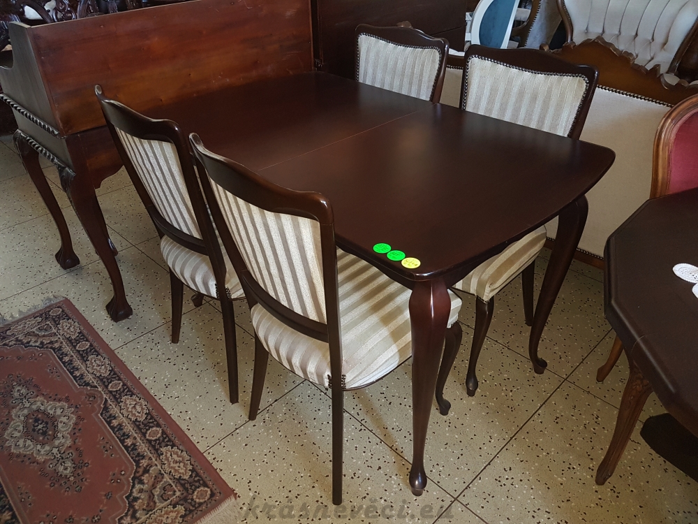 Velmi pěkný exklusivní kuchyňský stylový SET. Kuchuňský stůl rozkládací, 4 zajímavé nohy + 4 kusy pohodlných čalouněných židlí