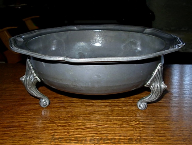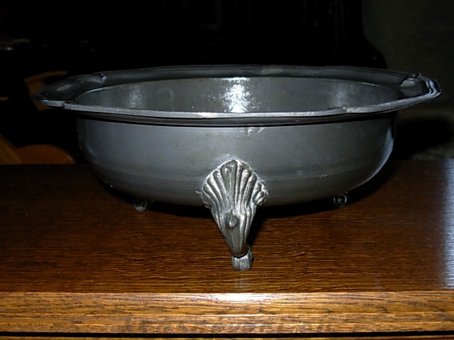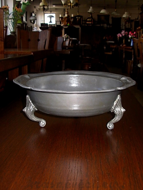 Velmi pěkná cínová miska na 3 zdobených nožkách.
