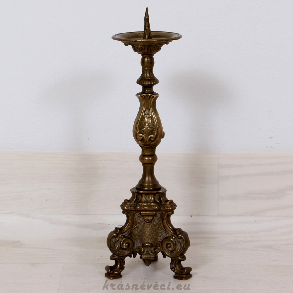 Velmi pěkný exklusivní mosazný svícen s bohatým zdobením na 3 nožkách, odlitek