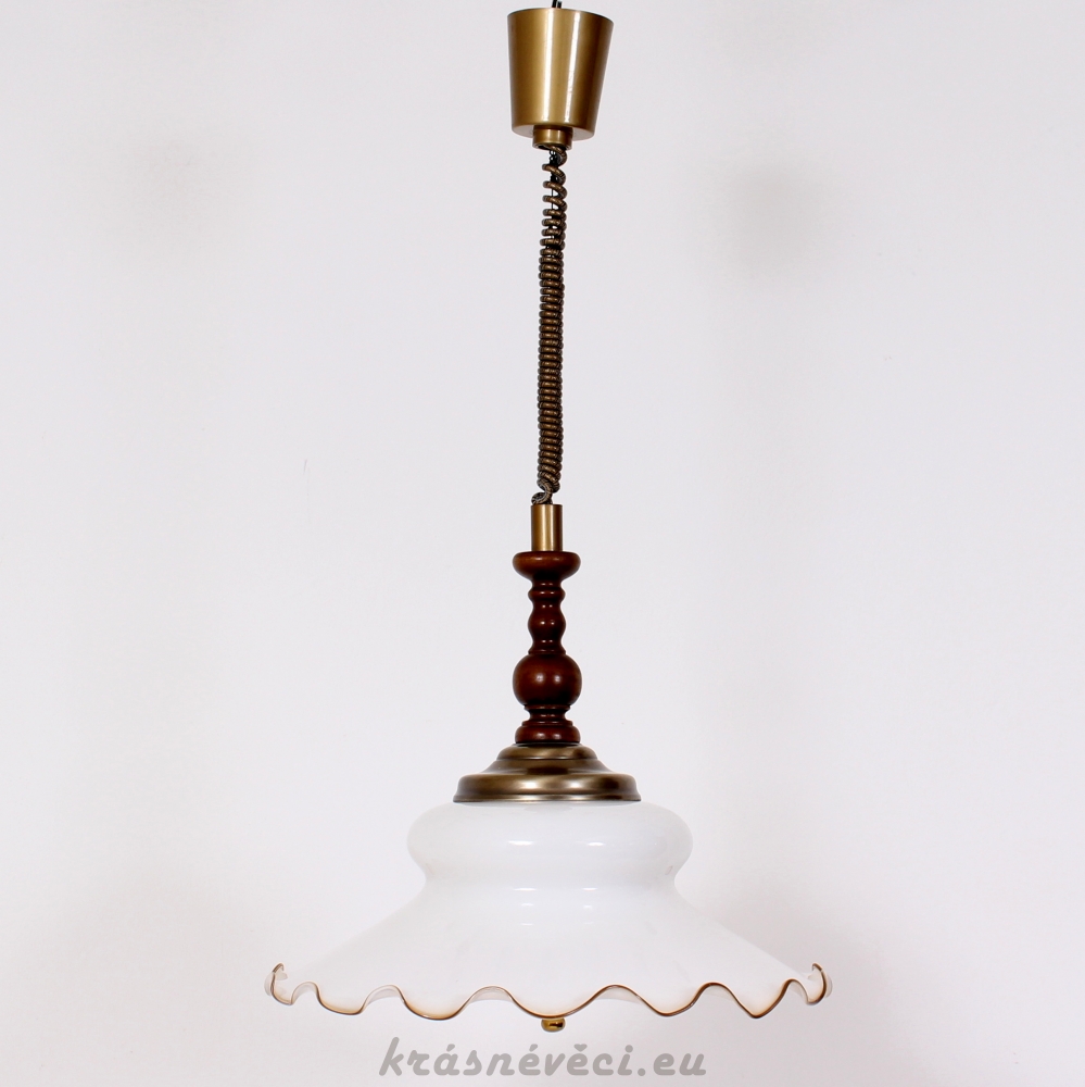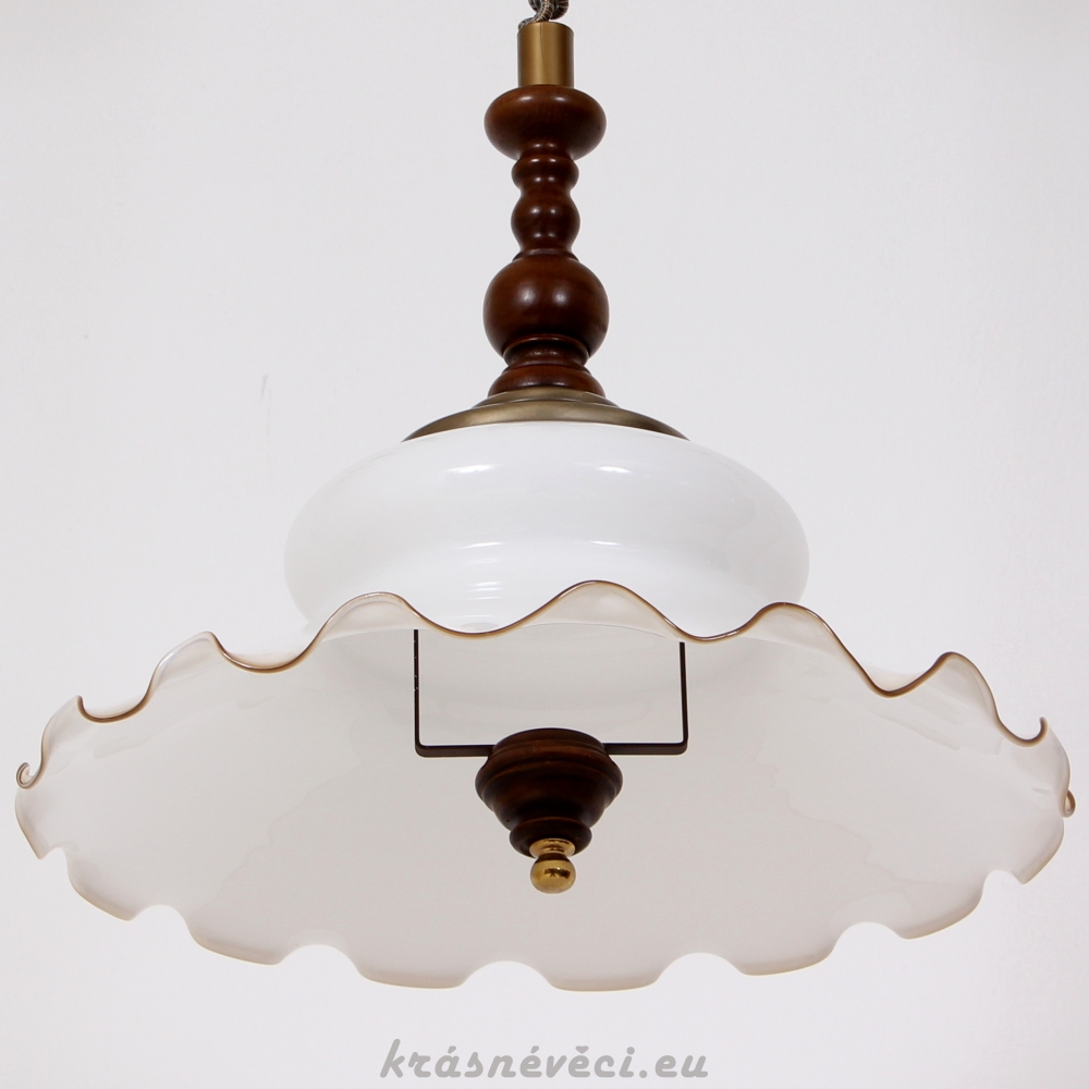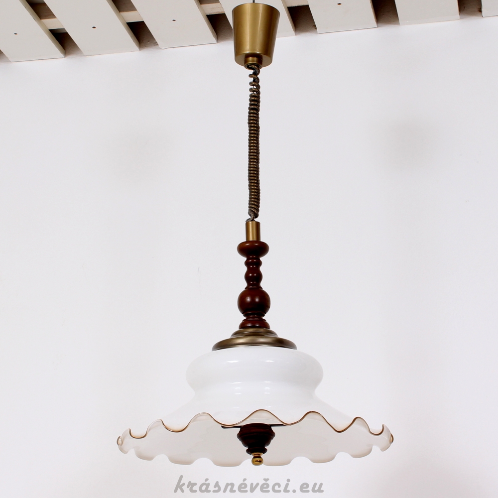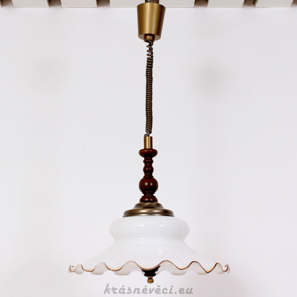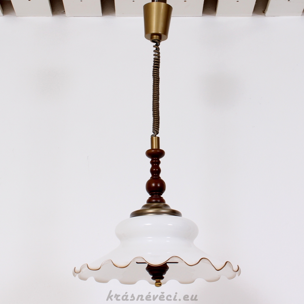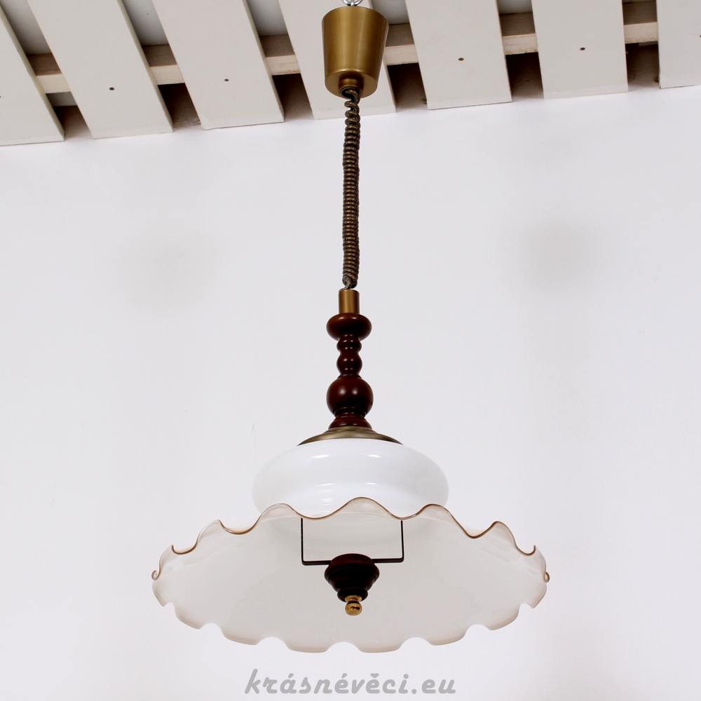 Velmi pěkný exklusivní polohovací stahovací lustr s velkým sklem. Možnost dalšího zkrácení celkové výšky lustru.