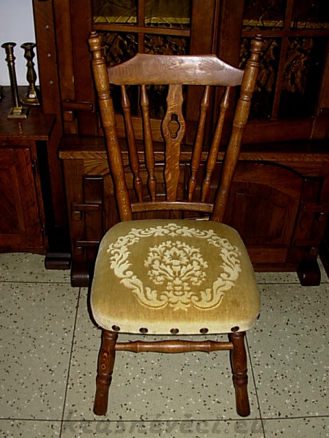 Velmi pěkné židle s masivní dubovou konstrukcí a čalouněním. Prodejné pouze jako SET 4 kusů.