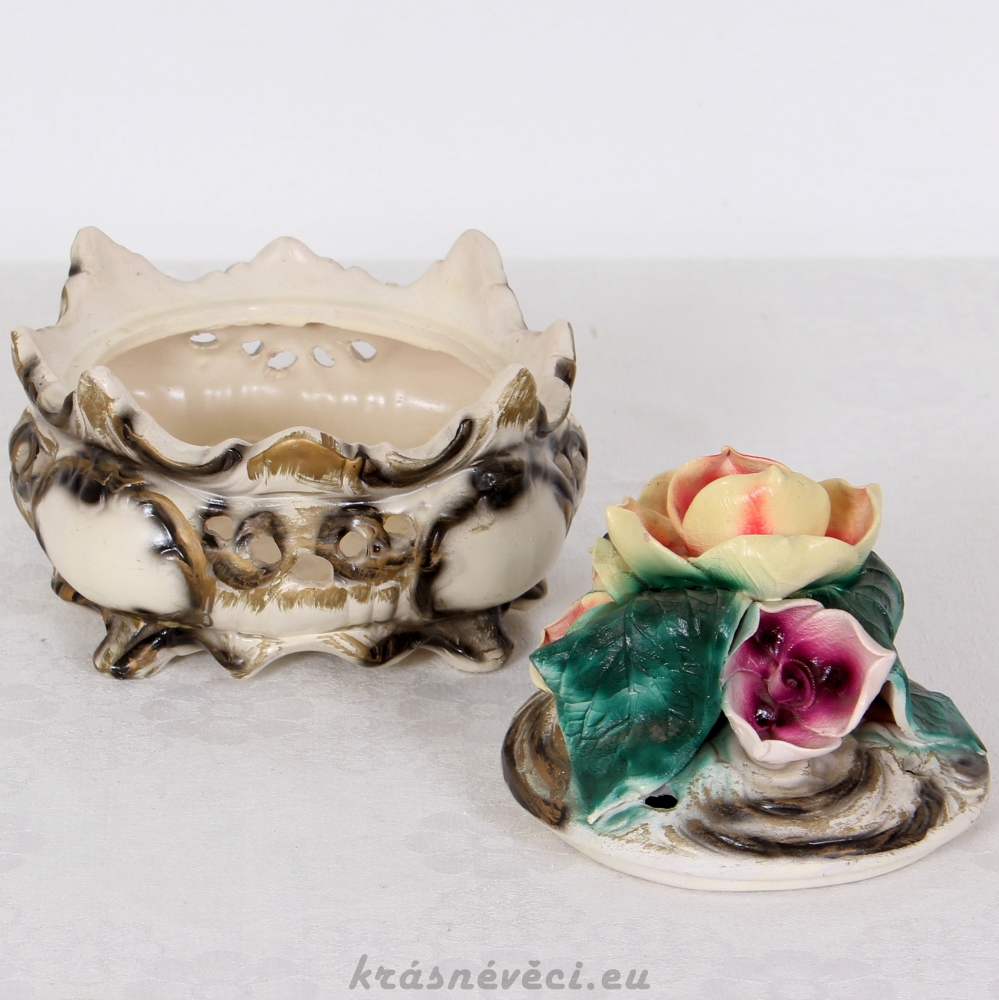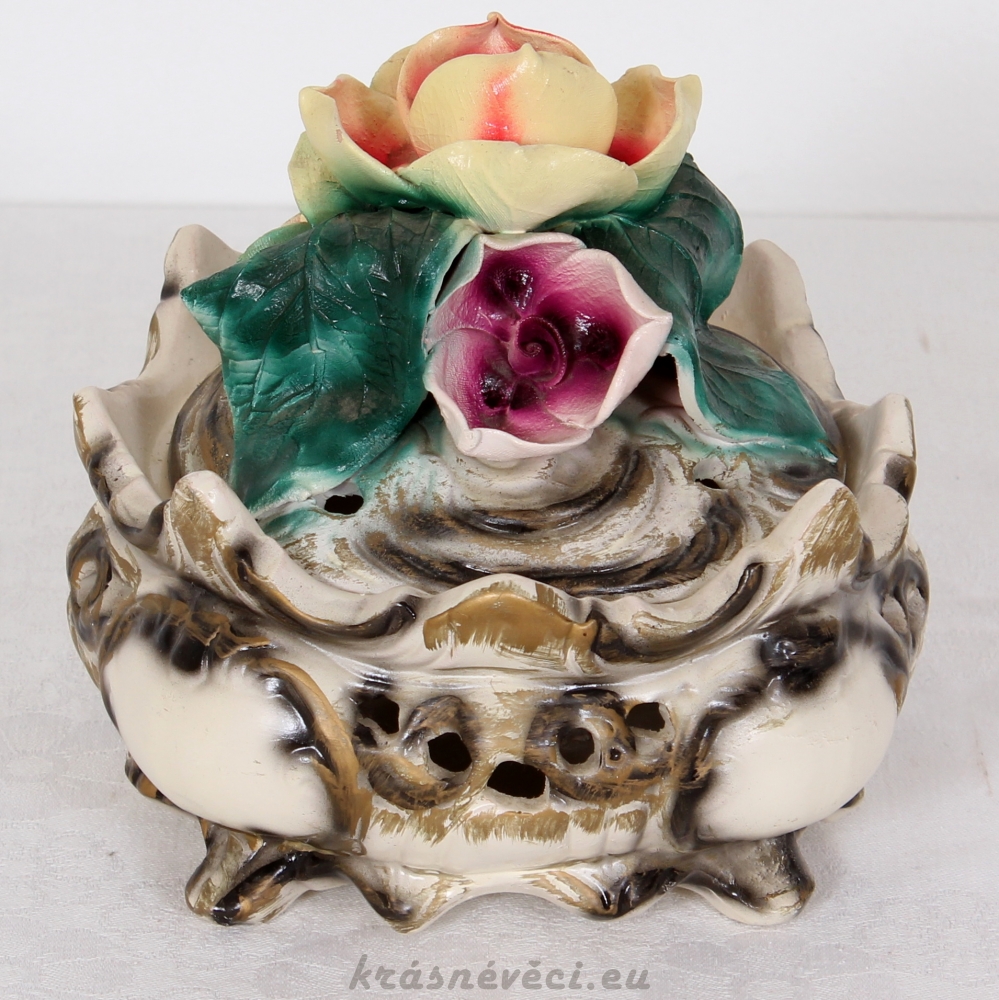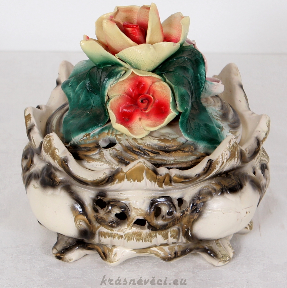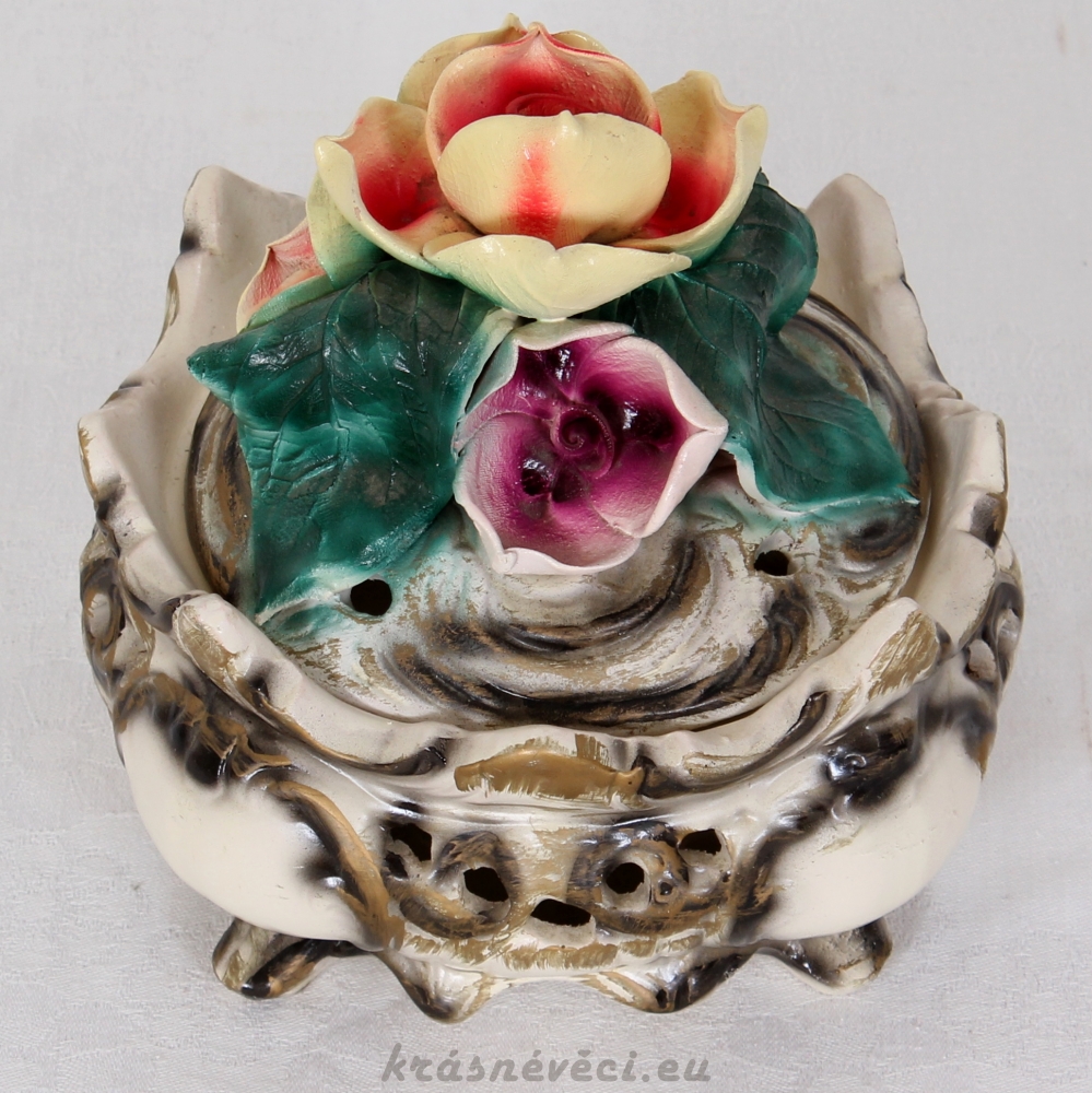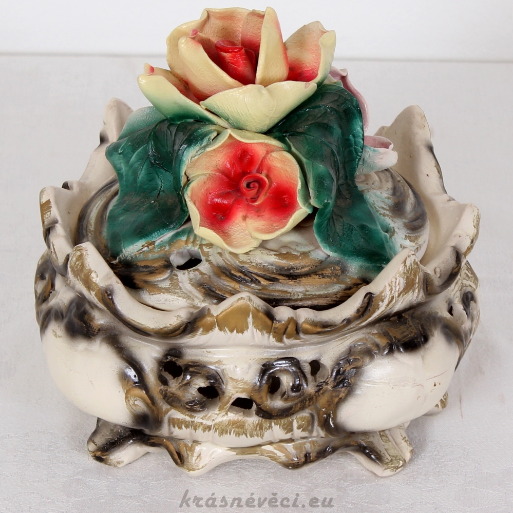 Velmi pěkná exklusivní bohatě zdobená keramická dóza s víkem, ručně malovaná.