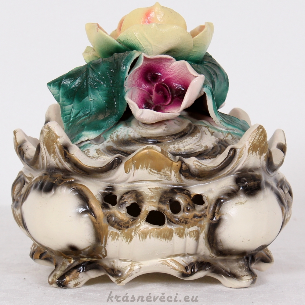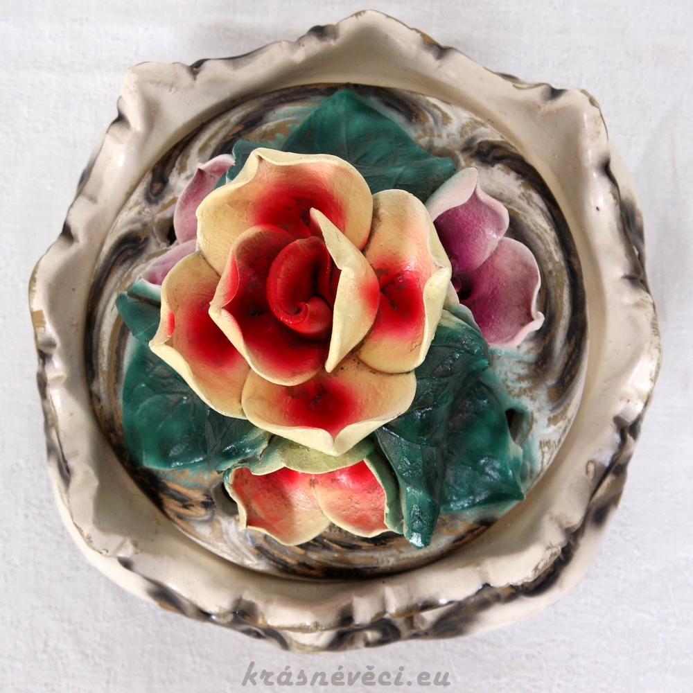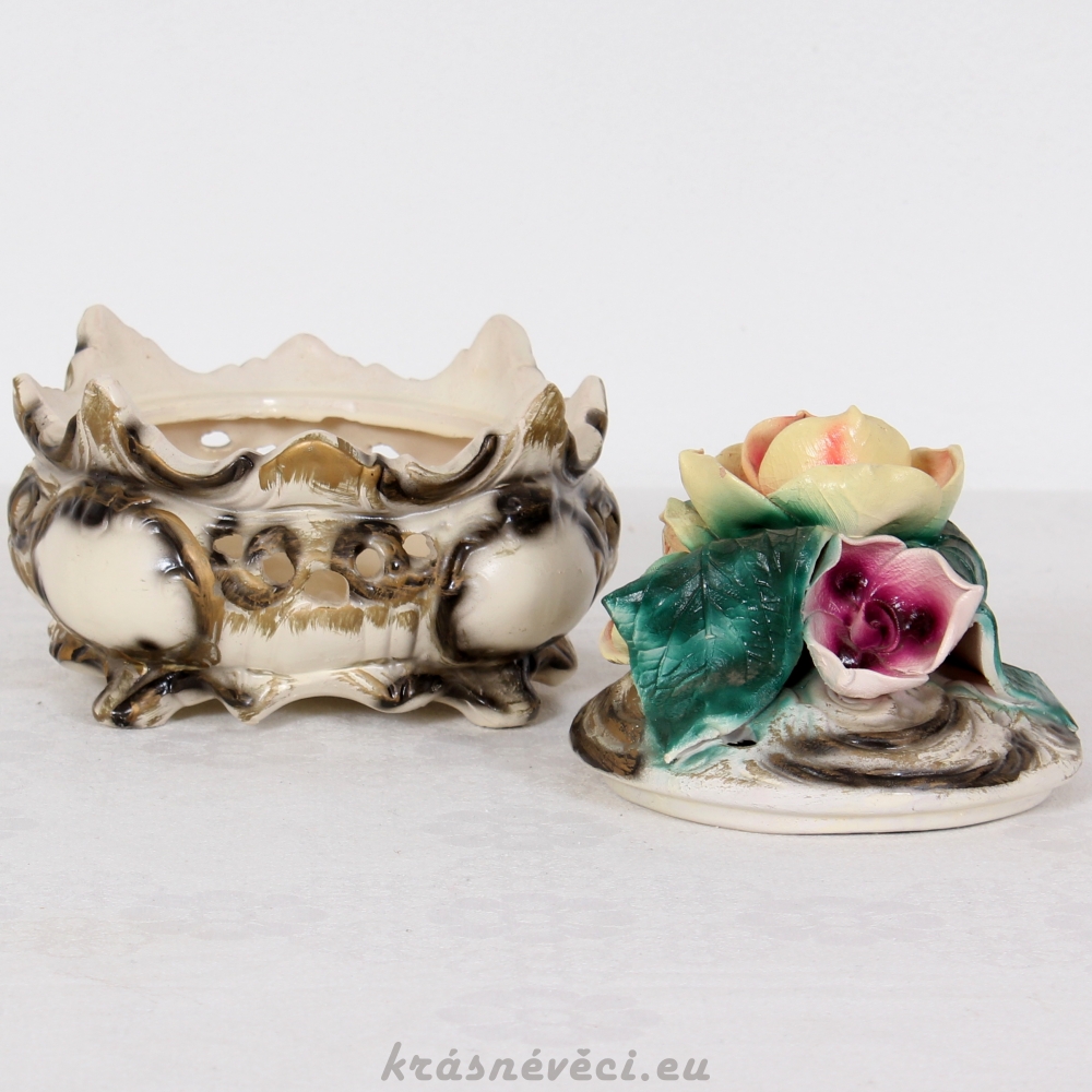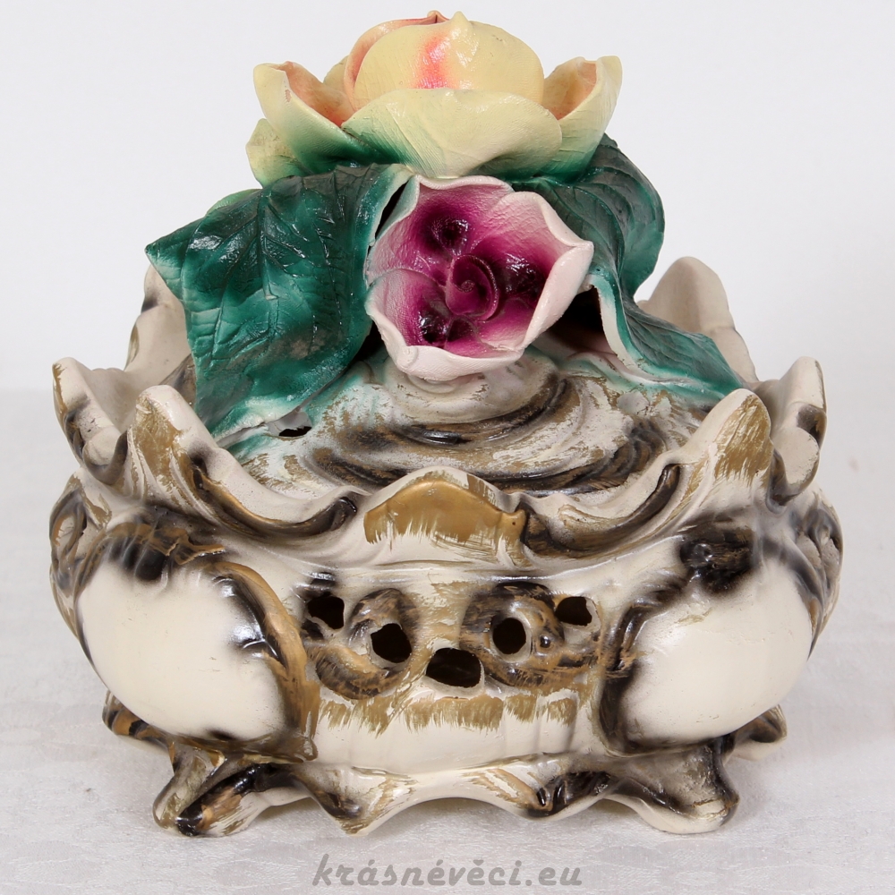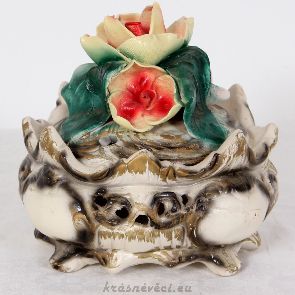 Velmi pěkná exklusivní bohatě zdobená keramická dóza s víkem, ručně malovaná.