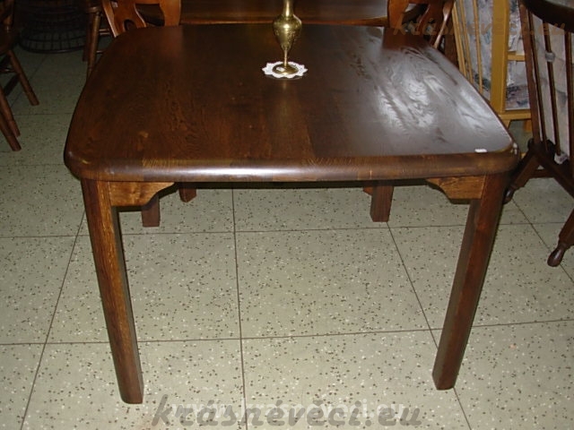 Velmi pěkný dubový čtvercový stůl s oblými rohy, 4 nohy.