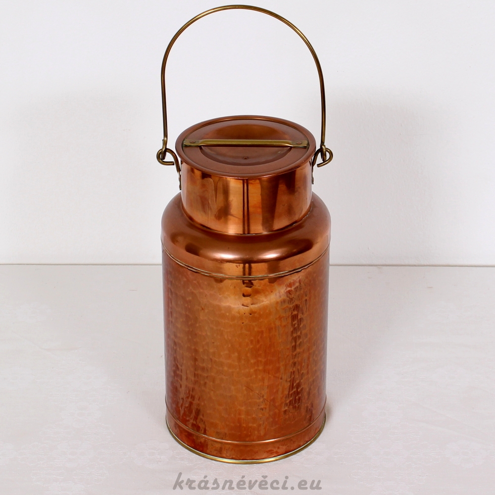 Velmi pěkná exklusivní měděná konev s víkem a ouškem.
