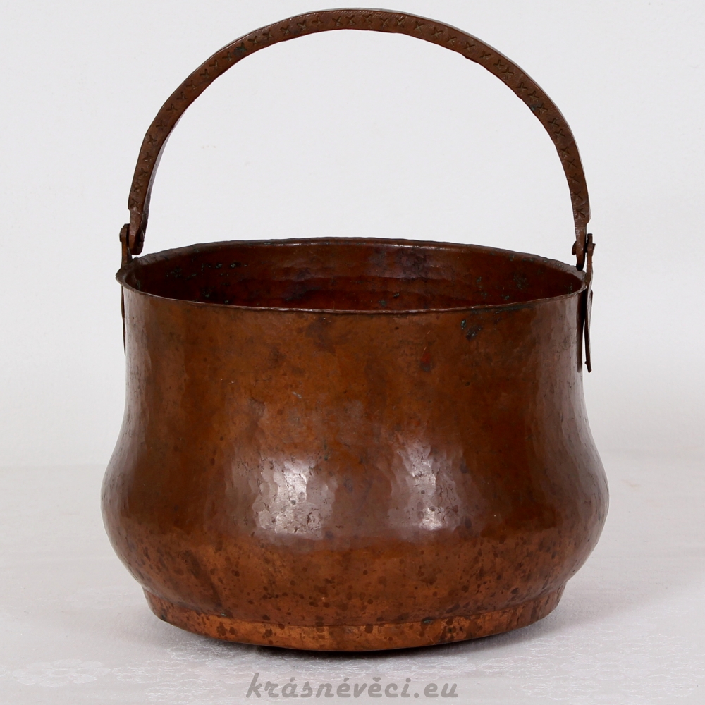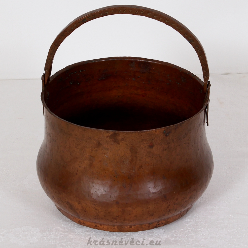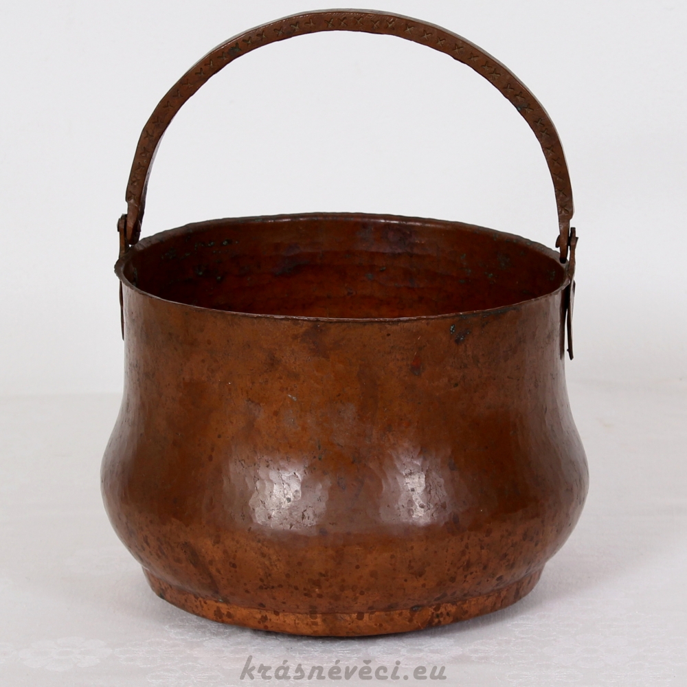Velmi pěkná exklusivní měděná nádoba s uchem, těžká a mohutná nádoba.