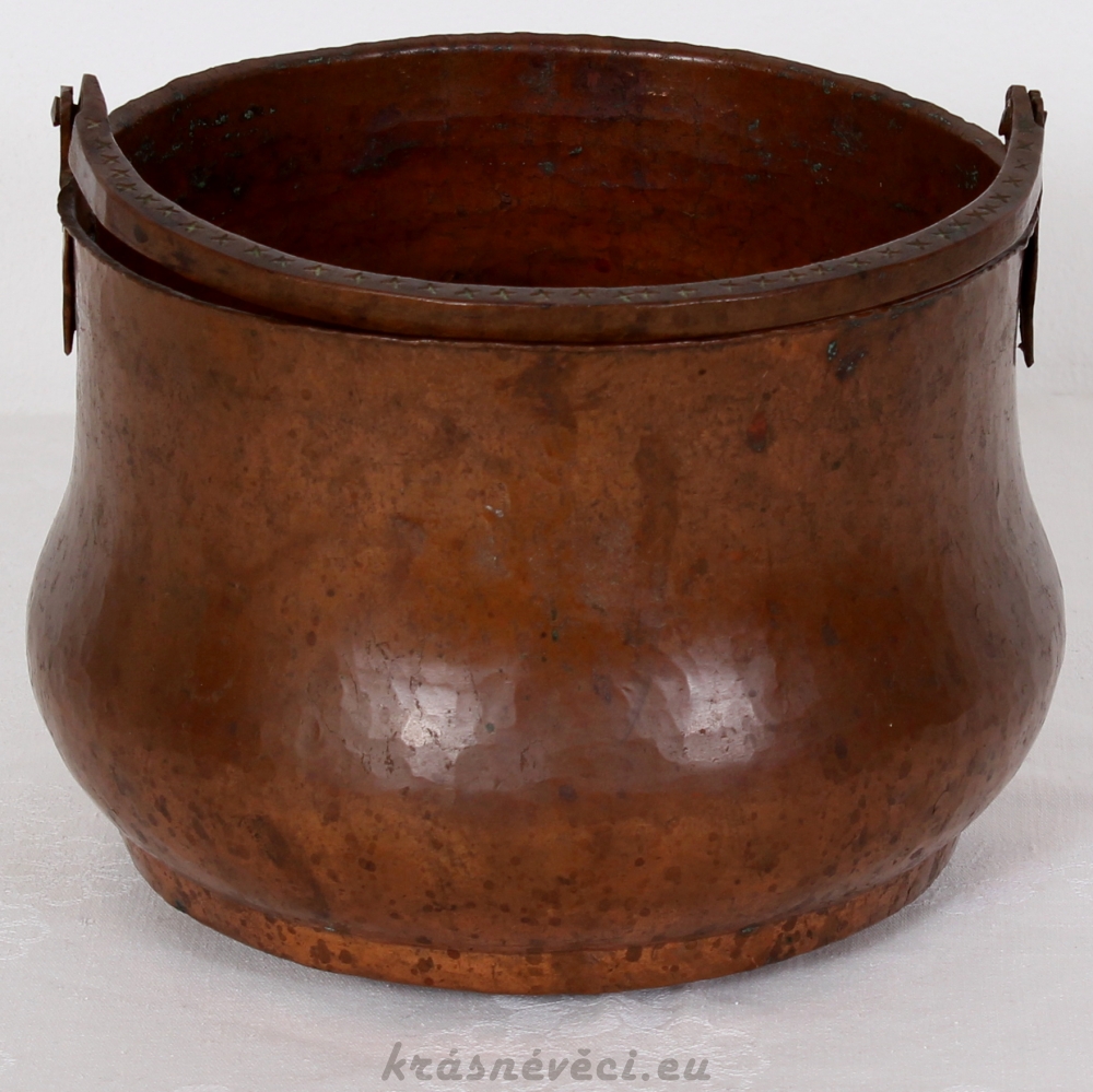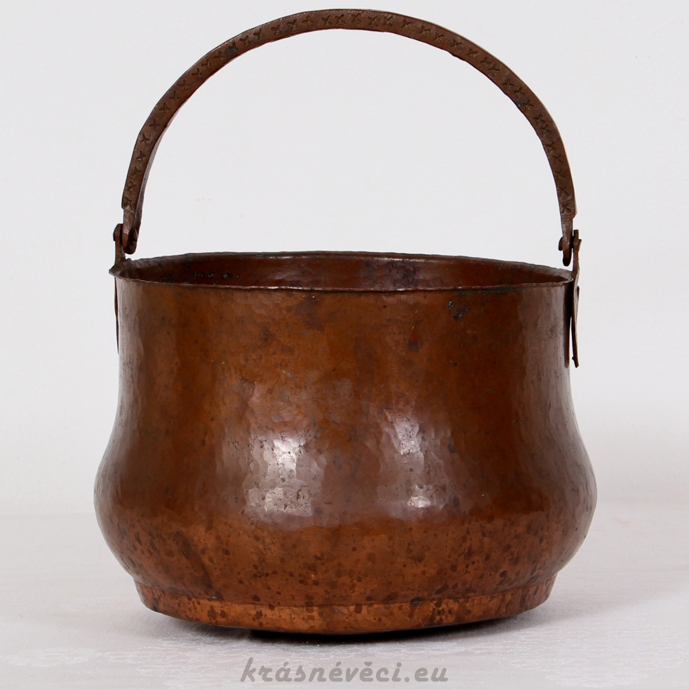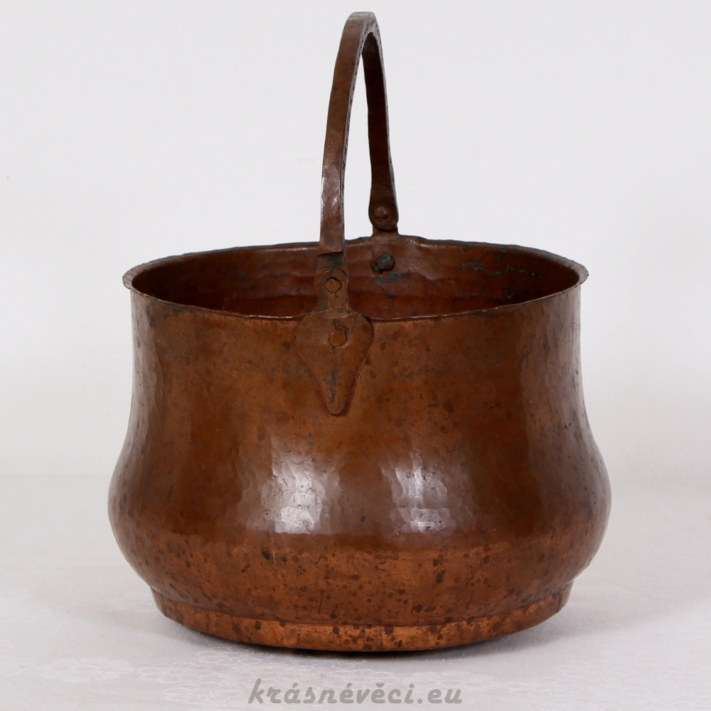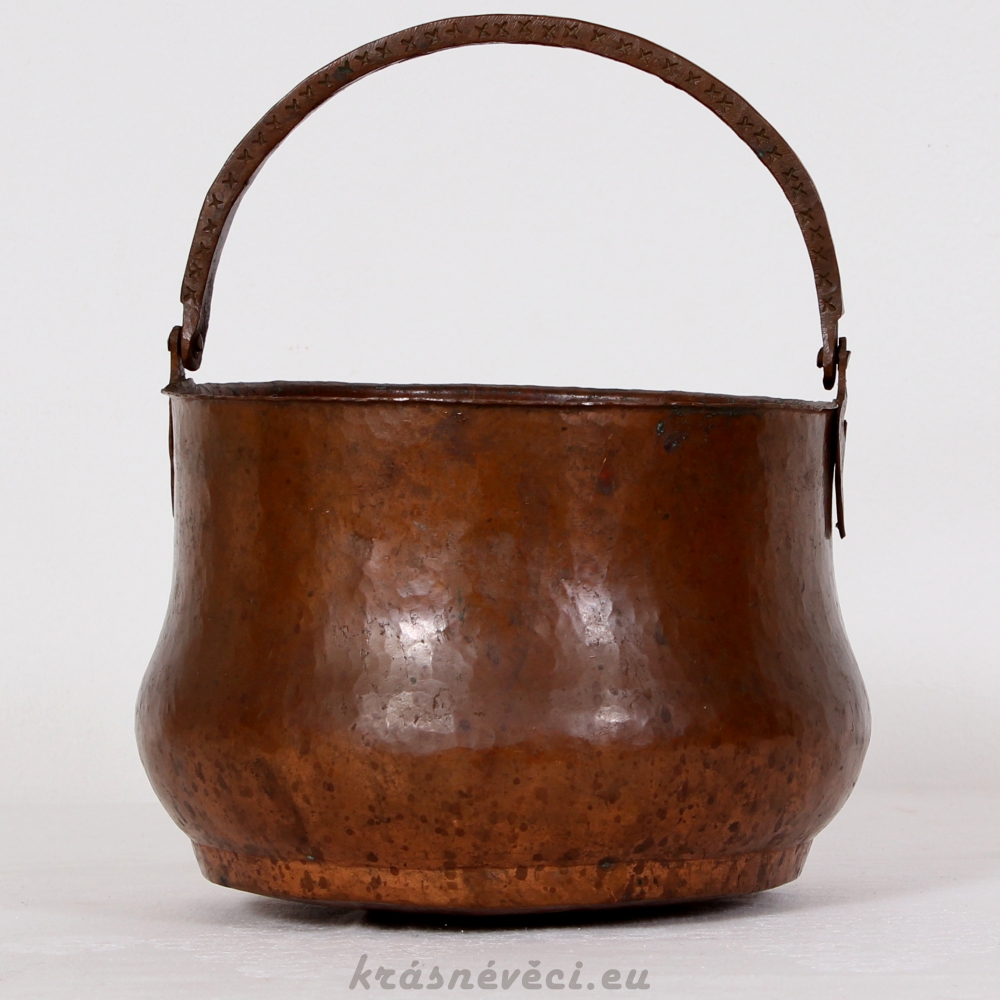 Velmi pěkná exklusivní měděná nádoba s uchem, těžká a mohutná nádoba.