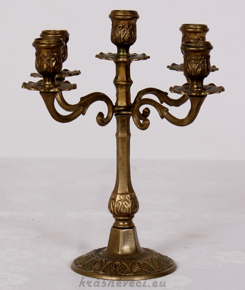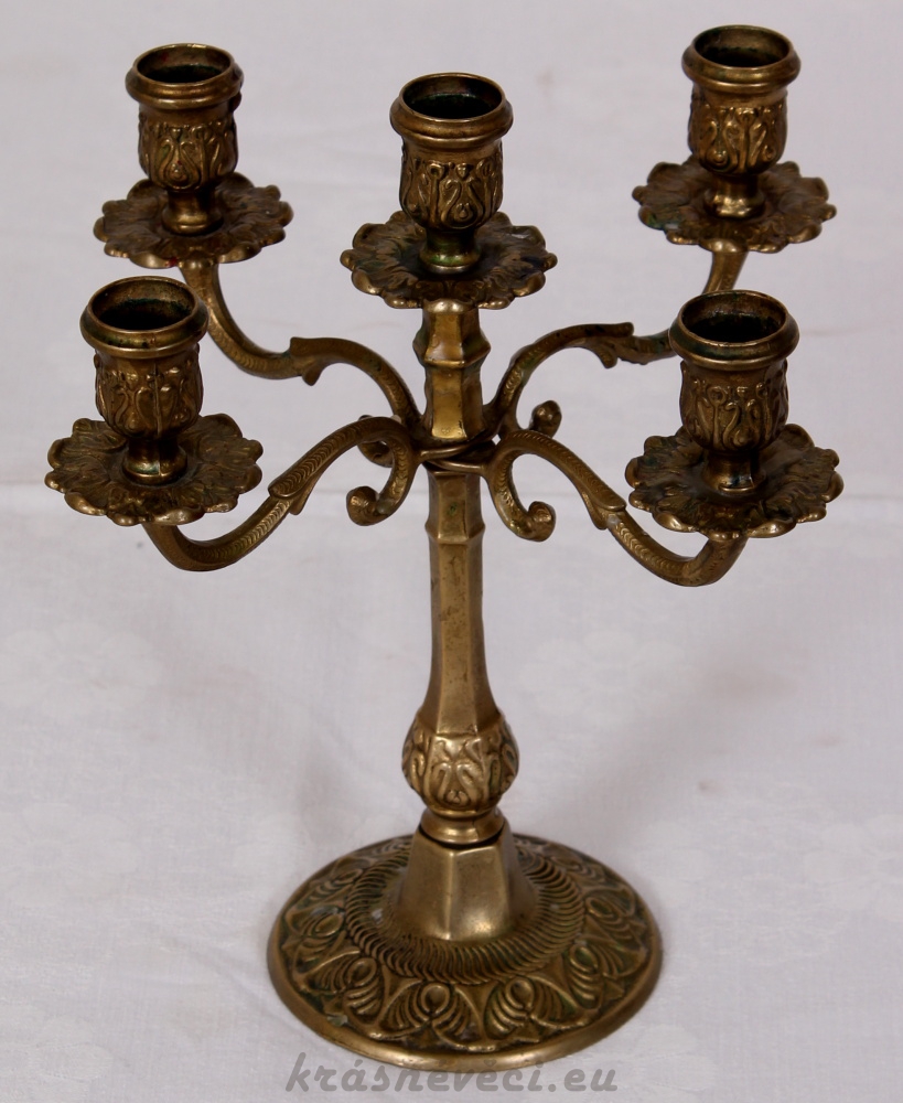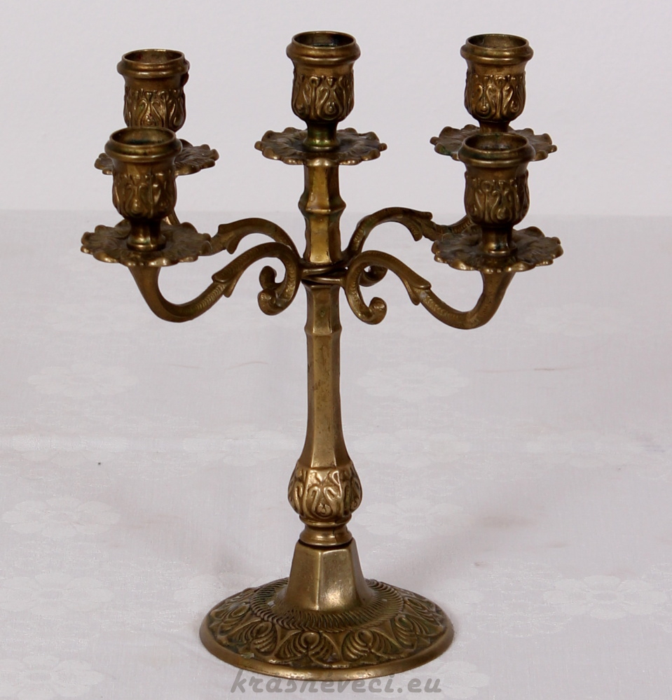 Velmi pěkný exklusivní mosazný 5 ramenný svícen se zdobením.