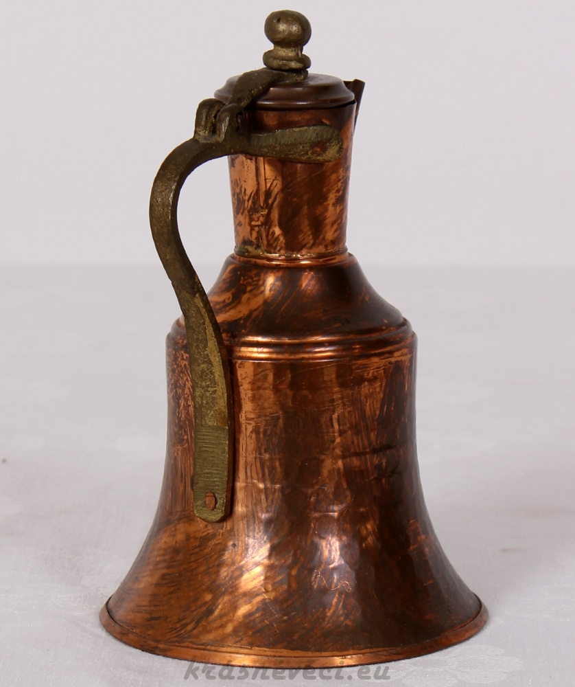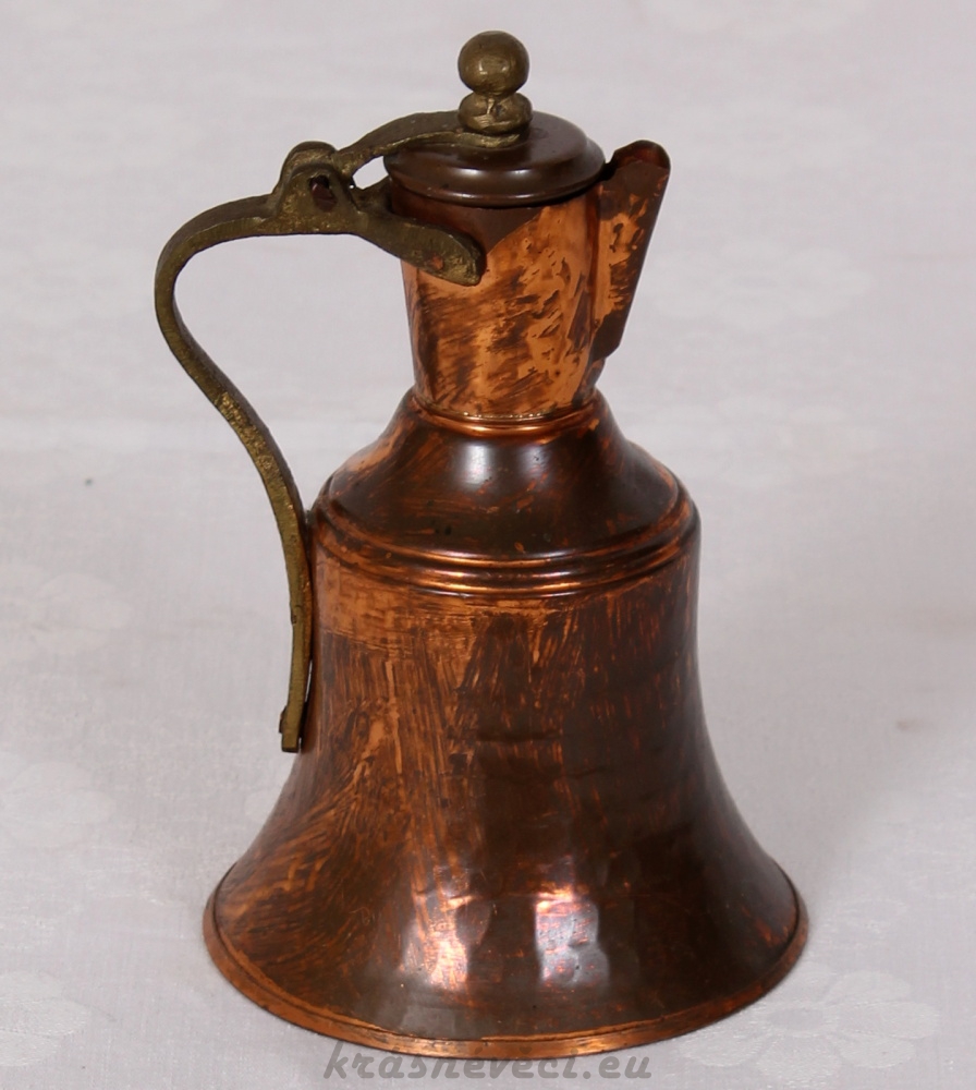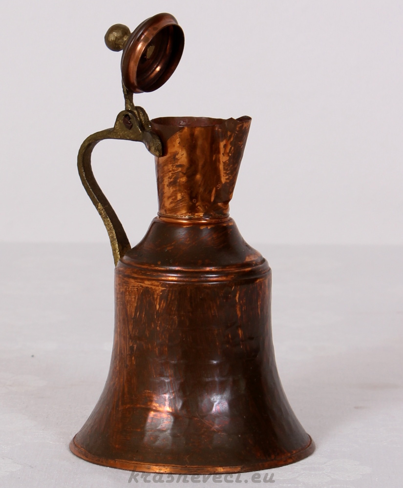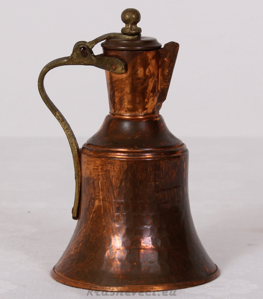 Velmi zajímavá měděná nádoba s víkem a ouškem.