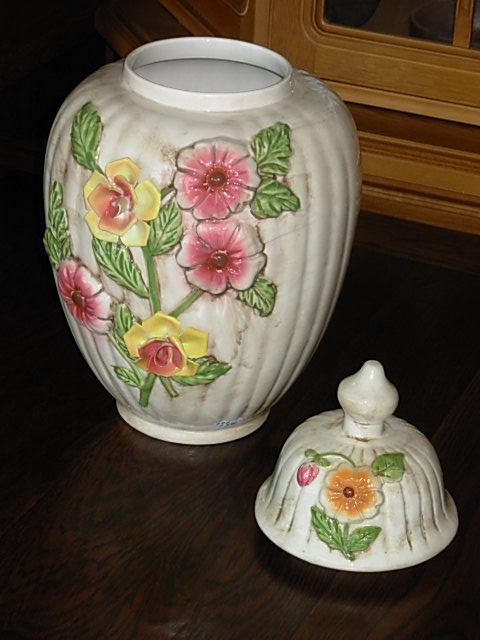 Velmi pěkná exklusivní Italská keramická dóza s víkem a zdobením, ručně malovaná.