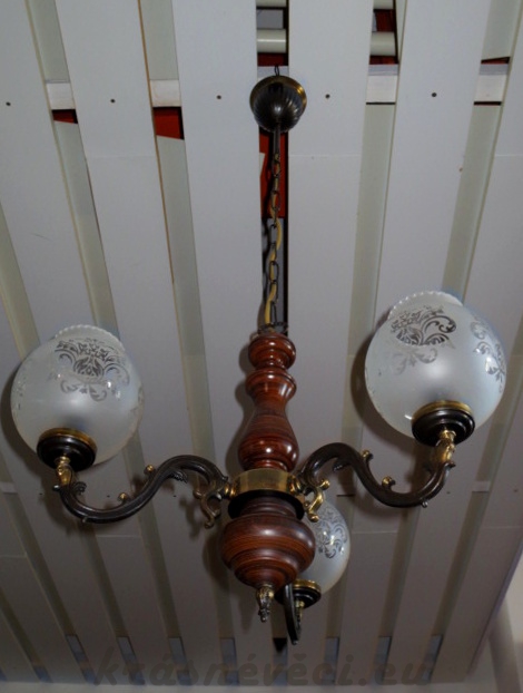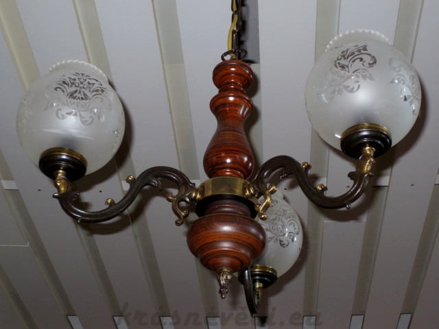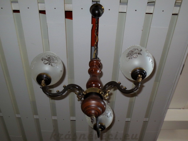 Velmi pěkný exklusivní 3 ramenný lustr na řetězu se zdobením. Možnost zkrácení celkové výšky lustru odebráním oček řetězu.