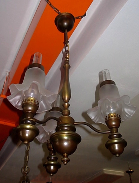 Velmi pěkný zajímavý 3 ramenný lustr na řetězu.