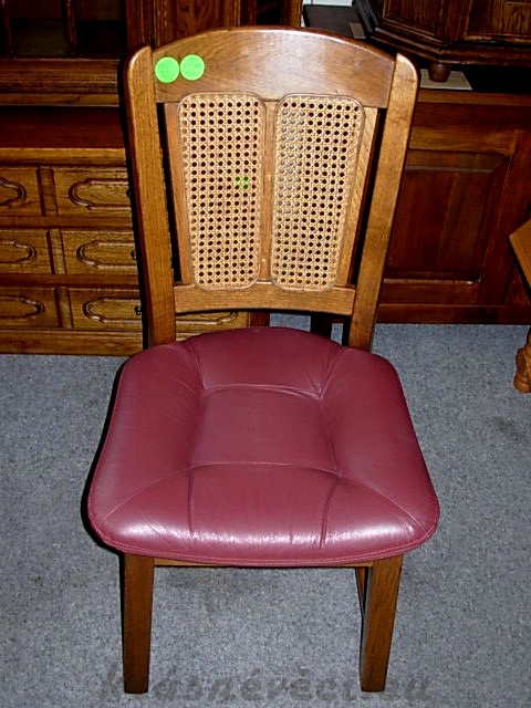 Velmi pěkné dubové židle čalouněné pravou kůží s ratanovou opěrkou zad. Prodejné pouze jako SET 4 kusů.