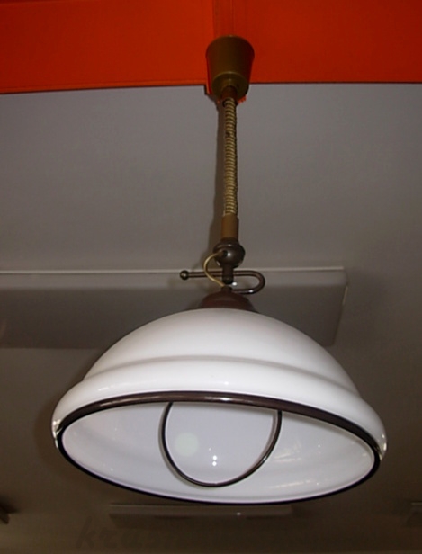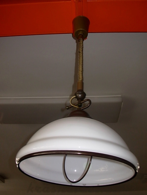 Velmi pěkný stahovací lustr s polohovací výškou a bočním vyvažováním lustru. Možnost dalšího zkrácení celkové výšky lustru.